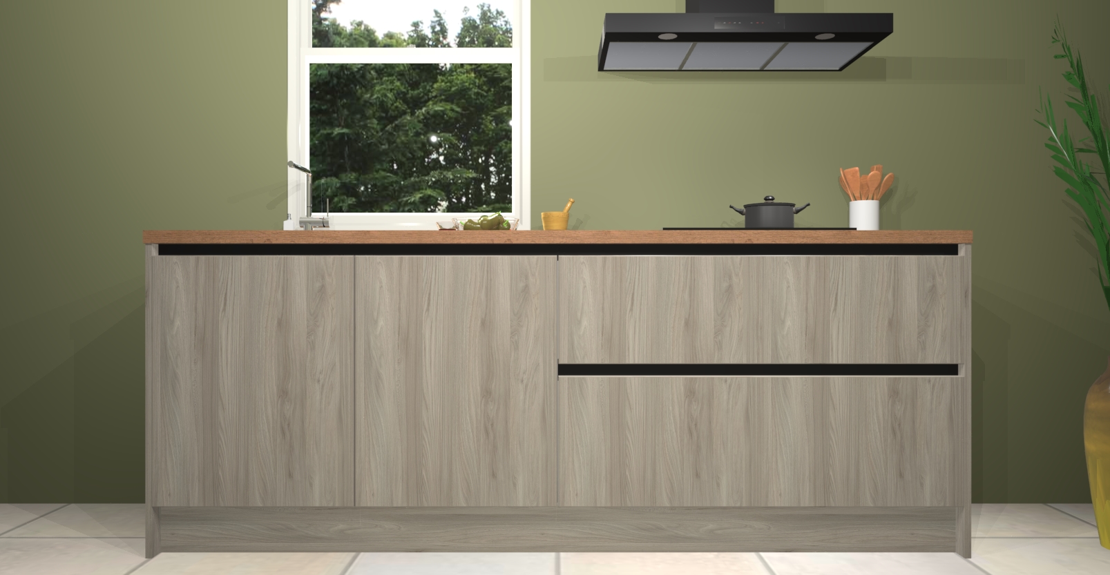 Inclusief plinten, stelpoten en werkblad