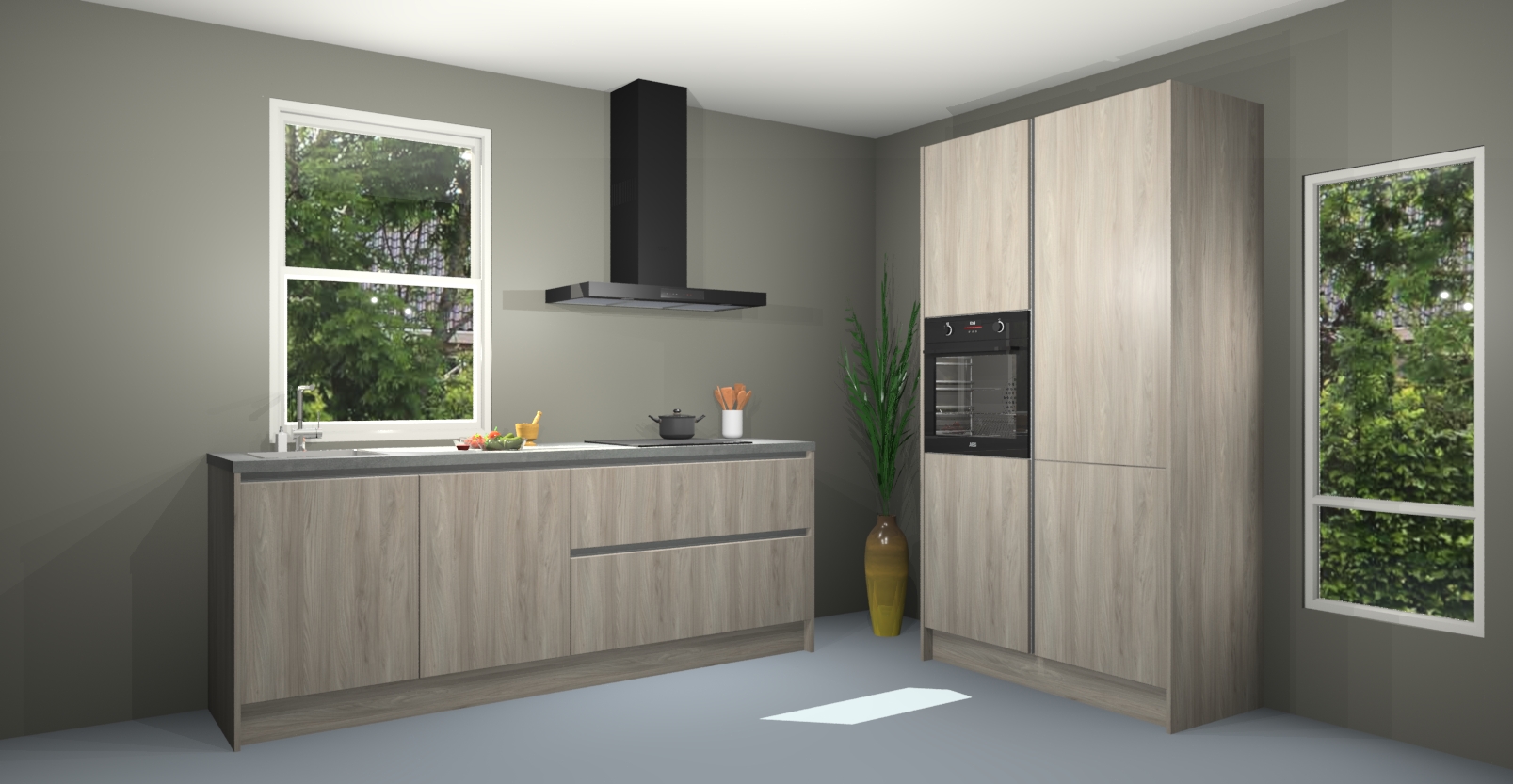 Ervaar het ultieme gevoel van warmte en gezelligheid in uw huis met de luxe Vuren greeploze keuken Monaco! Deze ongelooflijk sfeervolle houtlook straalt heerlijke warmte uit en tovert elke keuken om tot een gezellig familiecentrum. Breng uw dromen tot leven met deze unieke keuken, ontworpen voor moeiteloze luxe en functionaliteit.