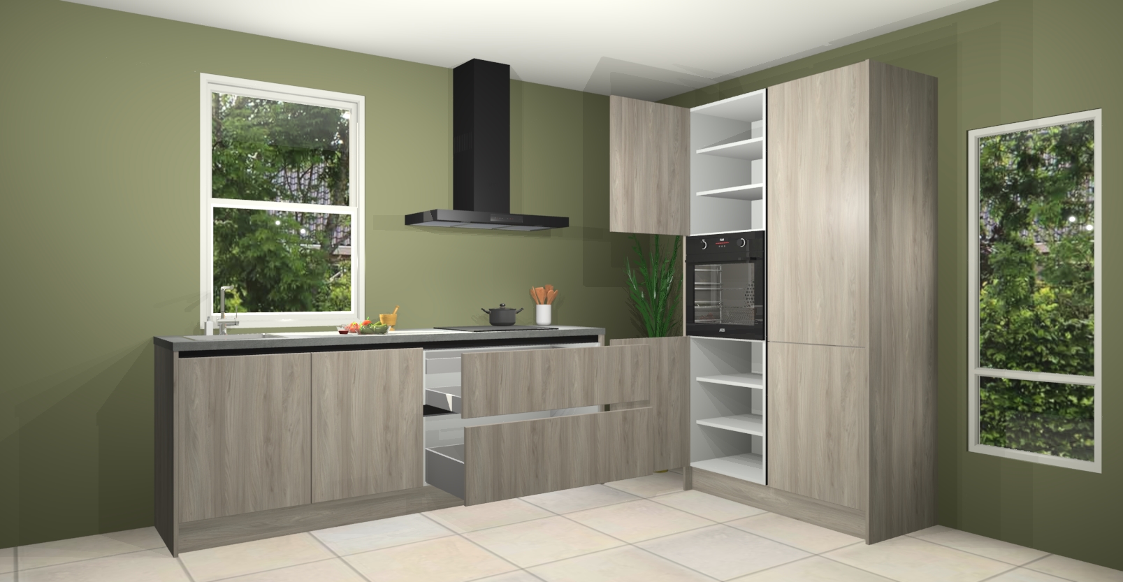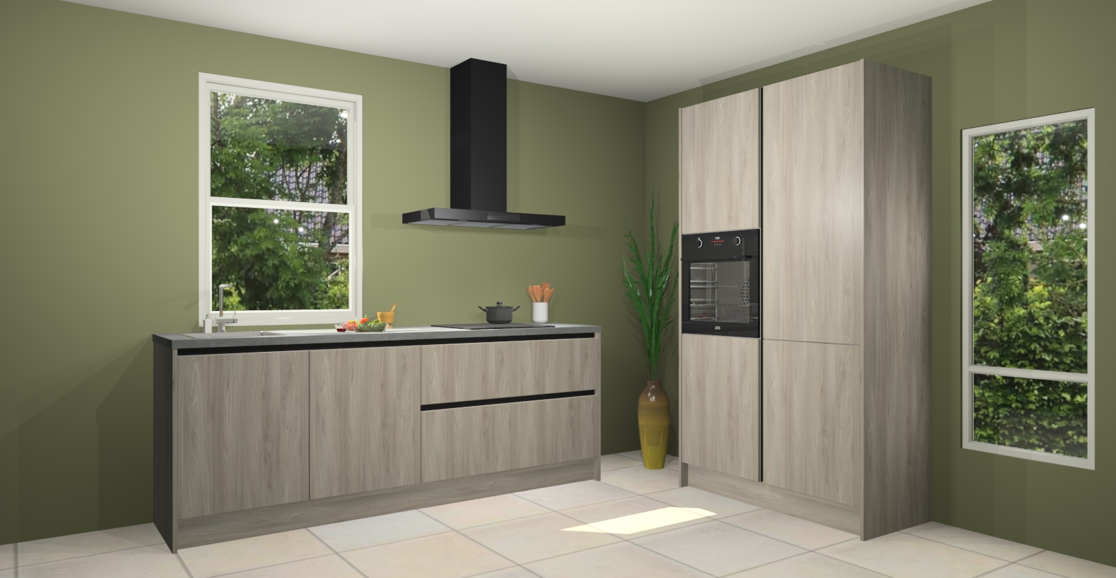 Ervaar het ultieme gevoel van warmte en gezelligheid in uw huis met de luxe Vuren greeploze keuken Monaco! Deze ongelooflijk sfeervolle houtlook straalt heerlijke warmte uit en tovert elke keuken om tot een gezellig familiecentrum. Breng uw dromen tot leven met deze unieke keuken, ontworpen voor moeiteloze luxe en functionaliteit.