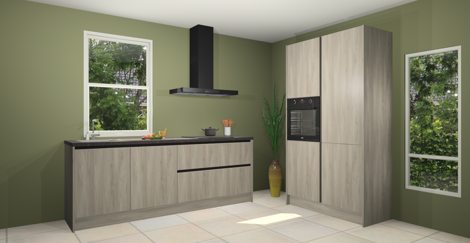 Ervaar het ultieme gevoel van warmte en gezelligheid in uw huis met de luxe Vuren greeploze keuken Monaco! Deze ongelooflijk sfeervolle houtlook straalt heerlijke warmte uit en tovert elke keuken om tot een gezellig familiecentrum. Breng uw dromen tot leven met deze unieke keuken, ontworpen voor moeiteloze luxe en functionaliteit.