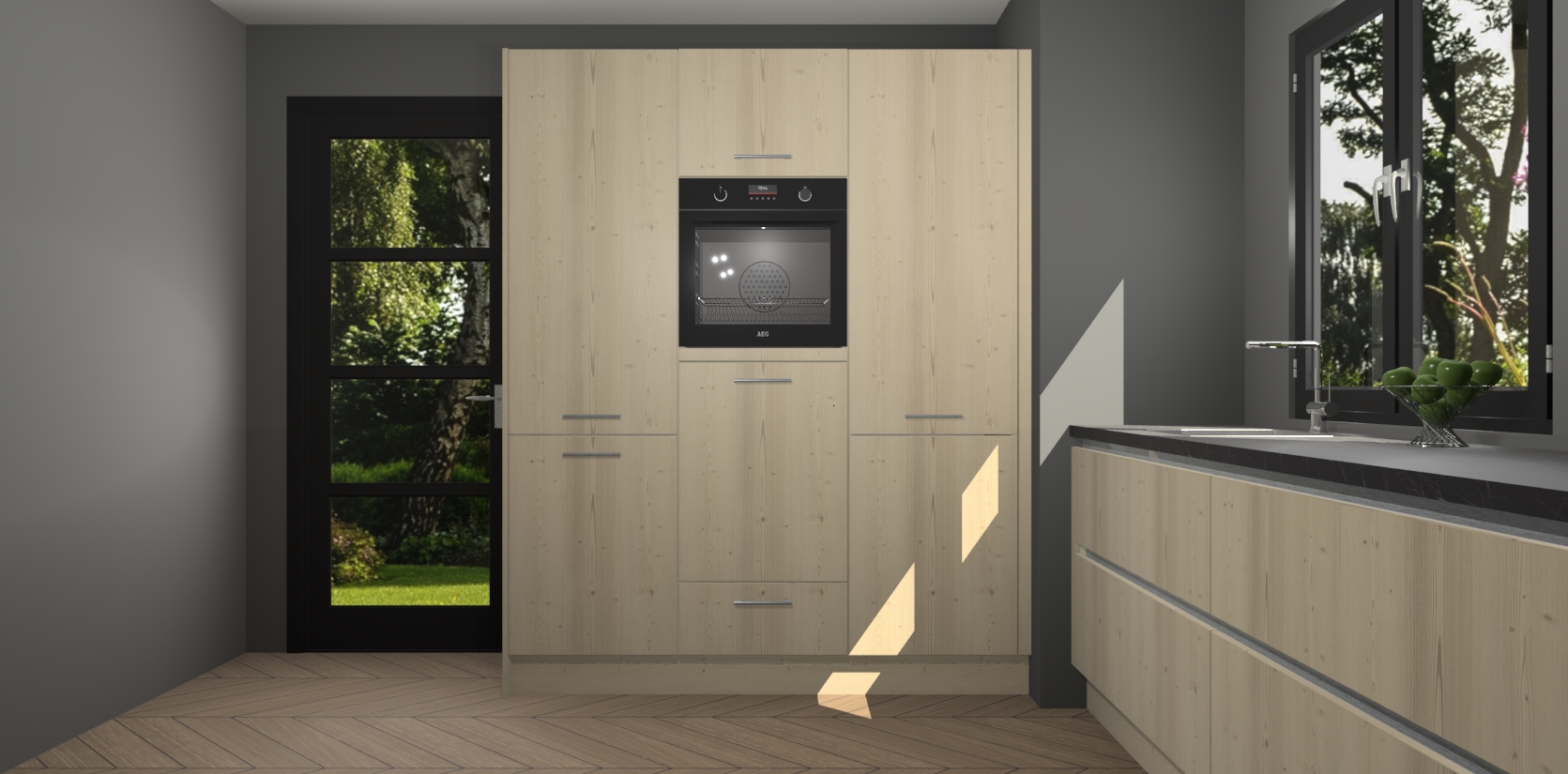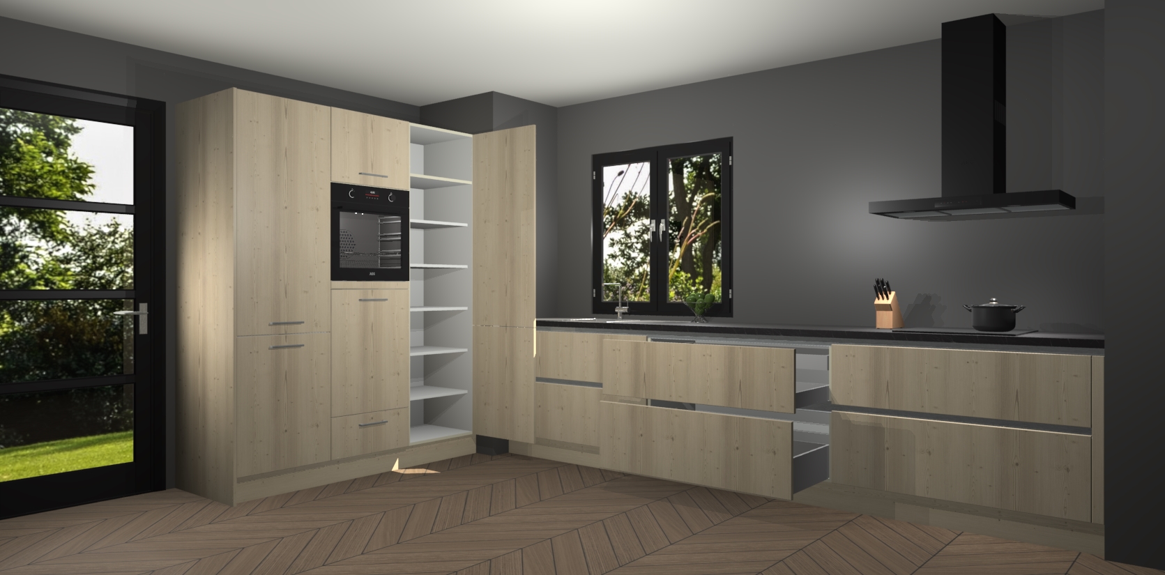 De softclose deuren openen en sluiten is ook heel eenvoudig - geniet van een moeiteloze keukenervaring, zelfs als er kinderen rondlopen. Voor extra gemak bij het plaatsen van uw bestelling bieden we ook een upgrade naar een kookplaat met geïntegreerde afzuiging.