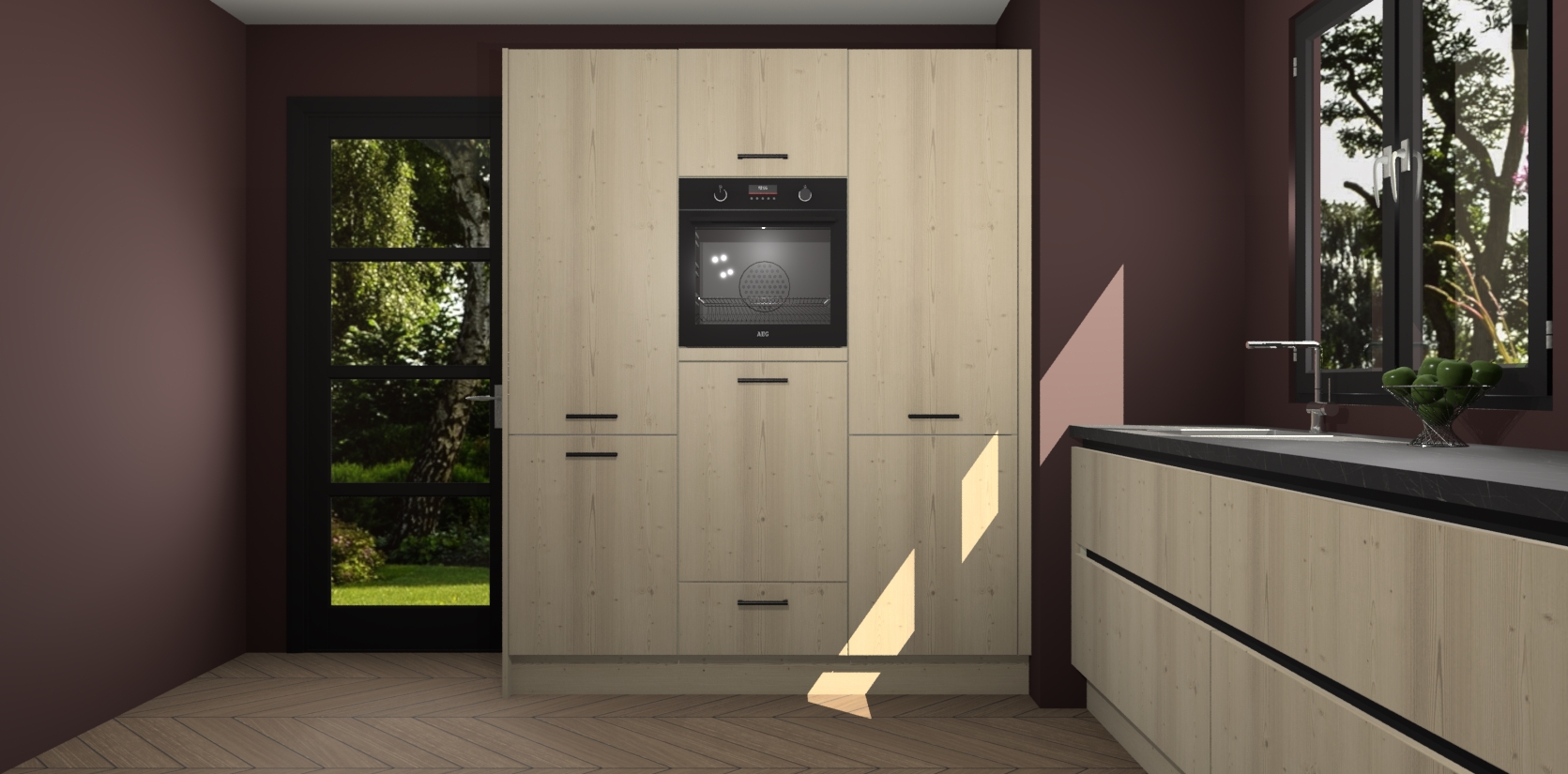 De softclose deuren openen en sluiten is ook heel eenvoudig - geniet van een moeiteloze keukenervaring, zelfs als er kinderen rondlopen. Voor extra gemak bij het plaatsen van uw bestelling bieden we ook een upgrade naar een kookplaat met geïntegreerde afzuiging.