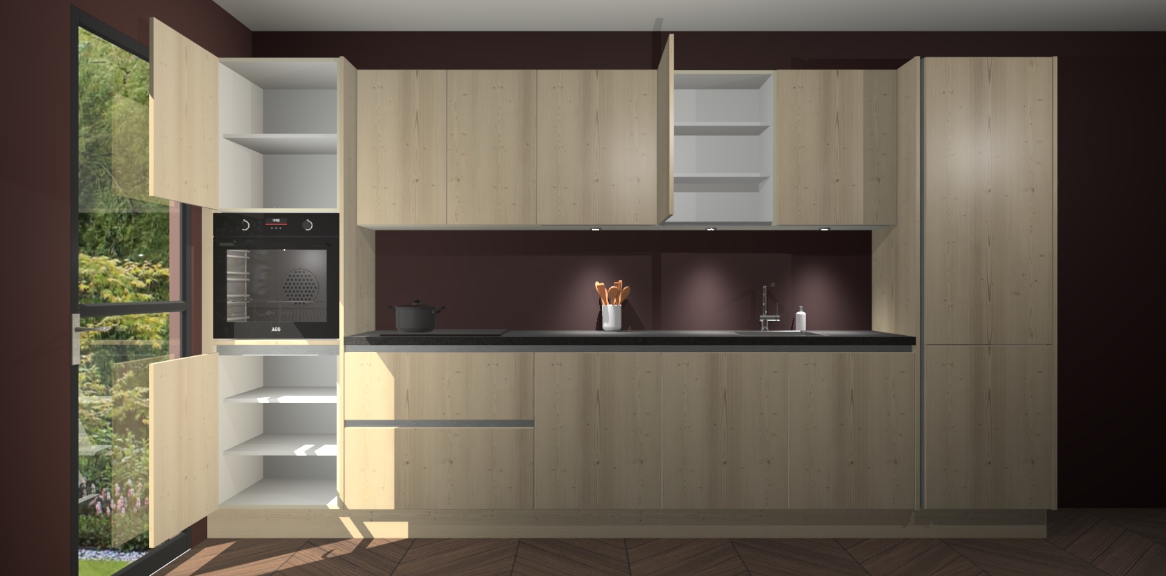 Dit is de perfecte keuken voor wie op zoek is naar een luxueuze stijl zonder zijn portemonnee te legen! Het chique ontwerp van de vuren greeploze keuken Wels voegt dat vleugje verfijning toe aan elk huis. Het gemak van voorgemonteerde kasten bespaart u talloze uren tijd en energie, zodat u veel sneller dan verwacht kunt beginnen te genieten van uw prachtige nieuwe keuken. Bovendien bedraagt de levertijd slechts 7 weken.