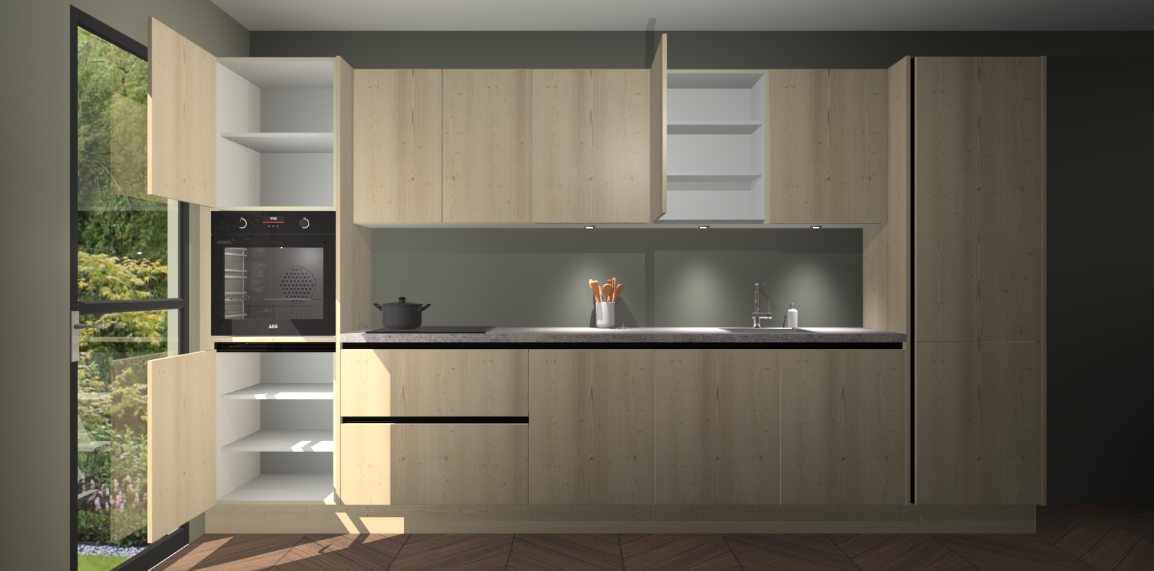 Dit is de perfecte keuken voor wie op zoek is naar een luxueuze stijl zonder zijn portemonnee te legen! Het chique ontwerp van de vuren greeploze keuken Wels voegt dat vleugje verfijning toe aan elk huis. Het gemak van voorgemonteerde kasten bespaart u talloze uren tijd en energie, zodat u veel sneller dan verwacht kunt beginnen te genieten van uw prachtige nieuwe keuken. Bovendien bedraagt de levertijd slechts 7 weken.