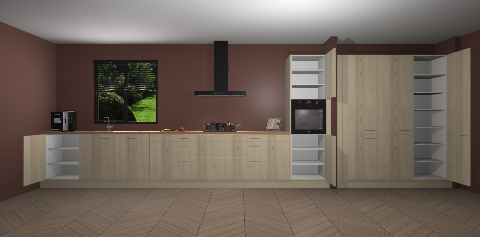 Een stijlvolle en praktische keuken als deze mag gezien worden. Dankzij de prachtige matte afwerking wordt de keuken gemakkelijk het middelpunt van uw huis - hij ziet er geweldig uit onder allerlei lichtomstandigheden, van dag tot nacht!