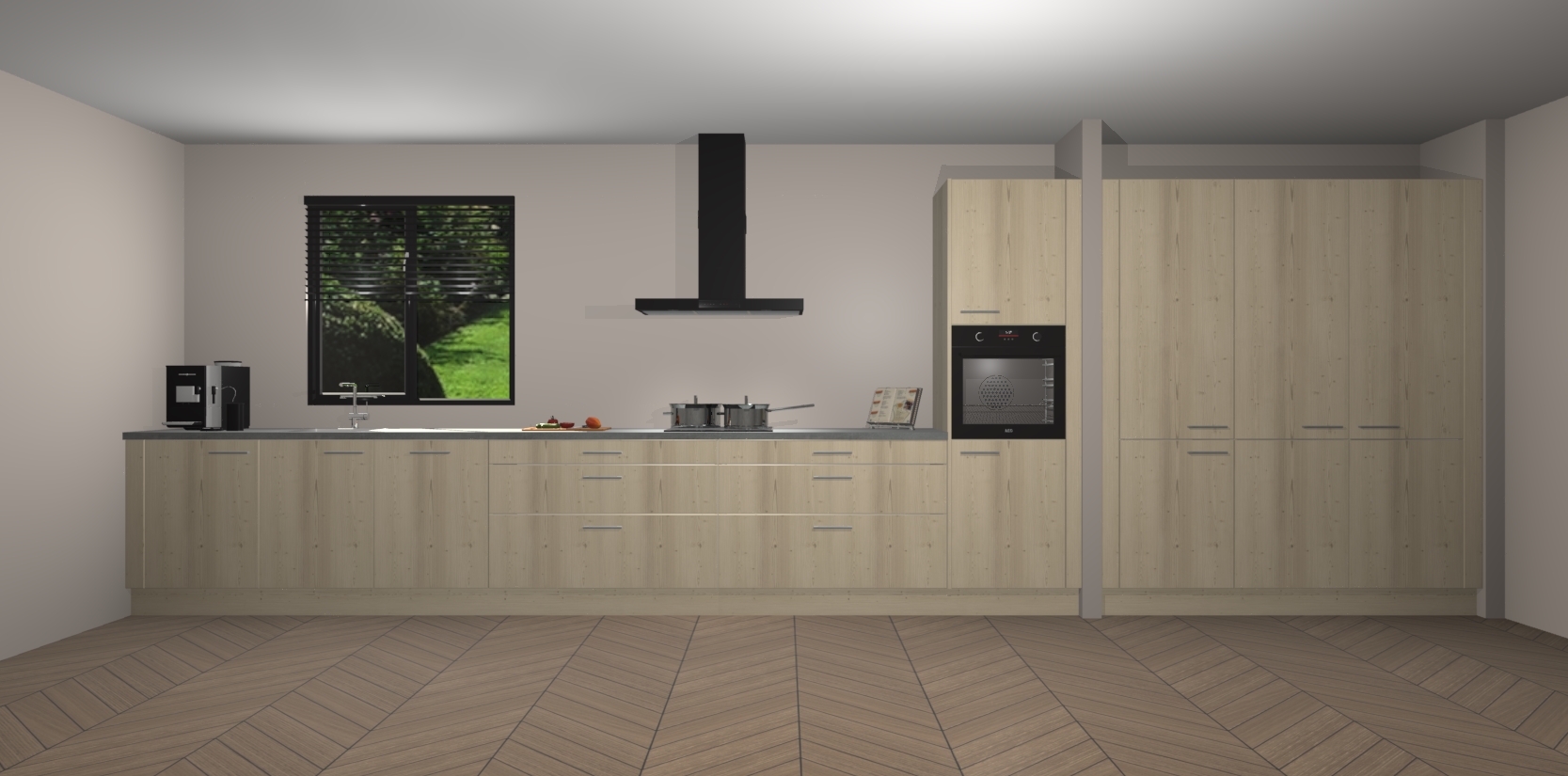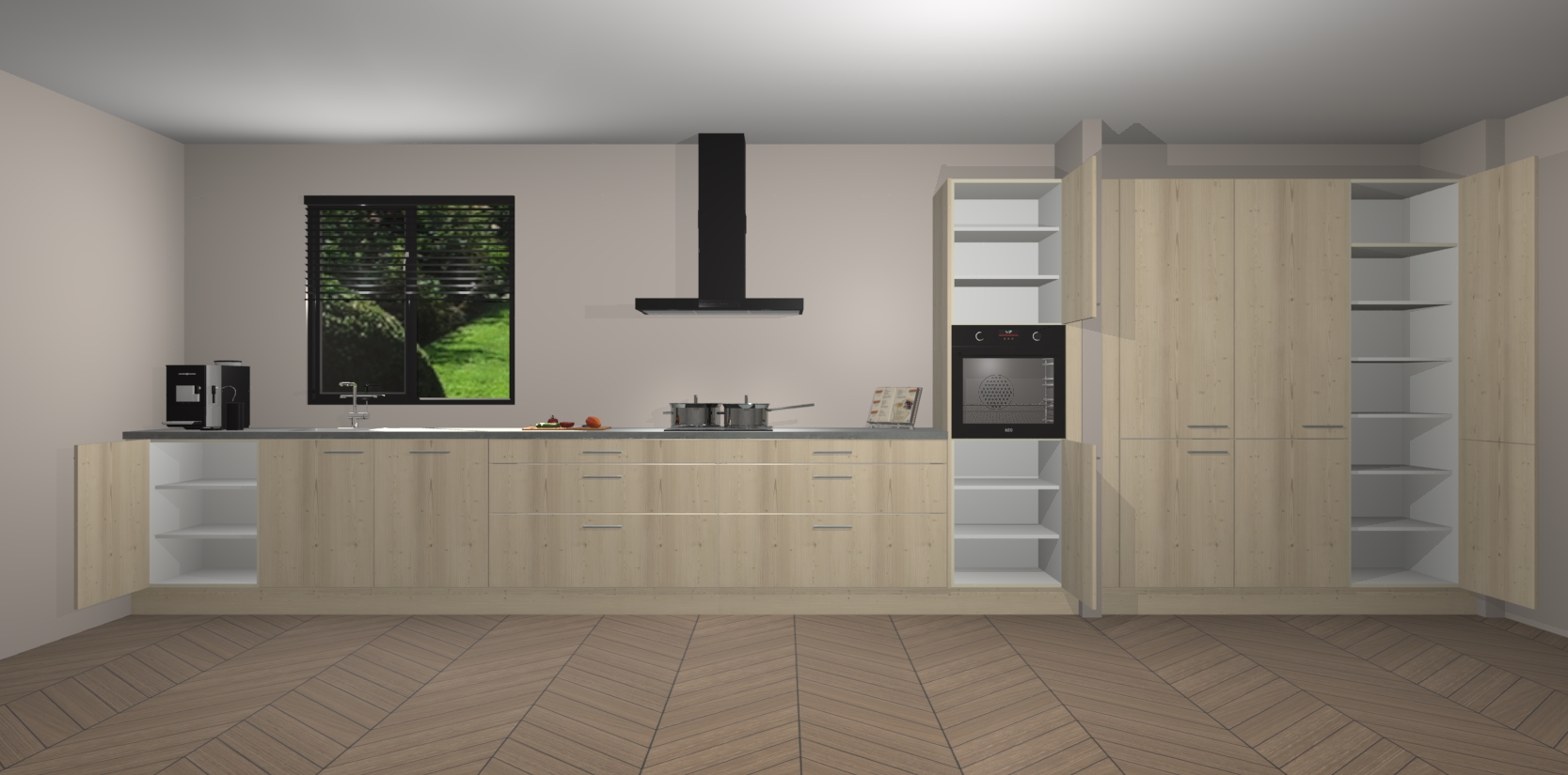 Een stijlvolle en praktische keuken als deze mag gezien worden. Dankzij de prachtige matte afwerking wordt de keuken gemakkelijk het middelpunt van uw huis - hij ziet er geweldig uit onder allerlei lichtomstandigheden, van dag tot nacht!