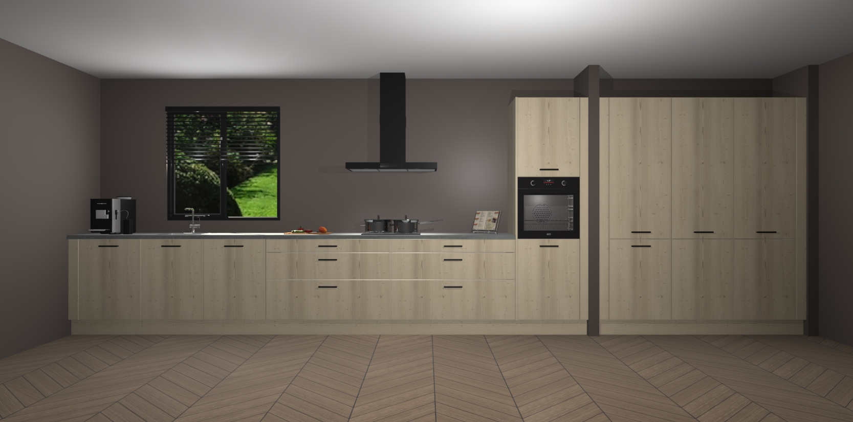 Een stijlvolle en praktische keuken als deze mag gezien worden. Dankzij de prachtige matte afwerking wordt de keuken gemakkelijk het middelpunt van uw huis - hij ziet er geweldig uit onder allerlei lichtomstandigheden, van dag tot nacht!