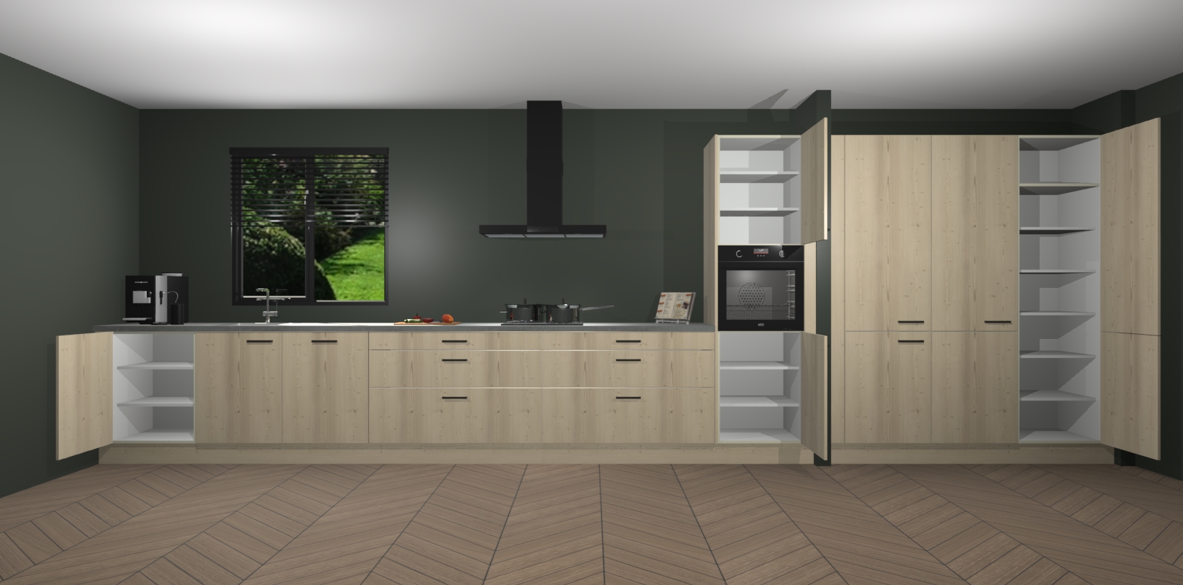 Een stijlvolle en praktische keuken als deze mag gezien worden. Dankzij de prachtige matte afwerking wordt de keuken gemakkelijk het middelpunt van uw huis - hij ziet er geweldig uit onder allerlei lichtomstandigheden, van dag tot nacht!