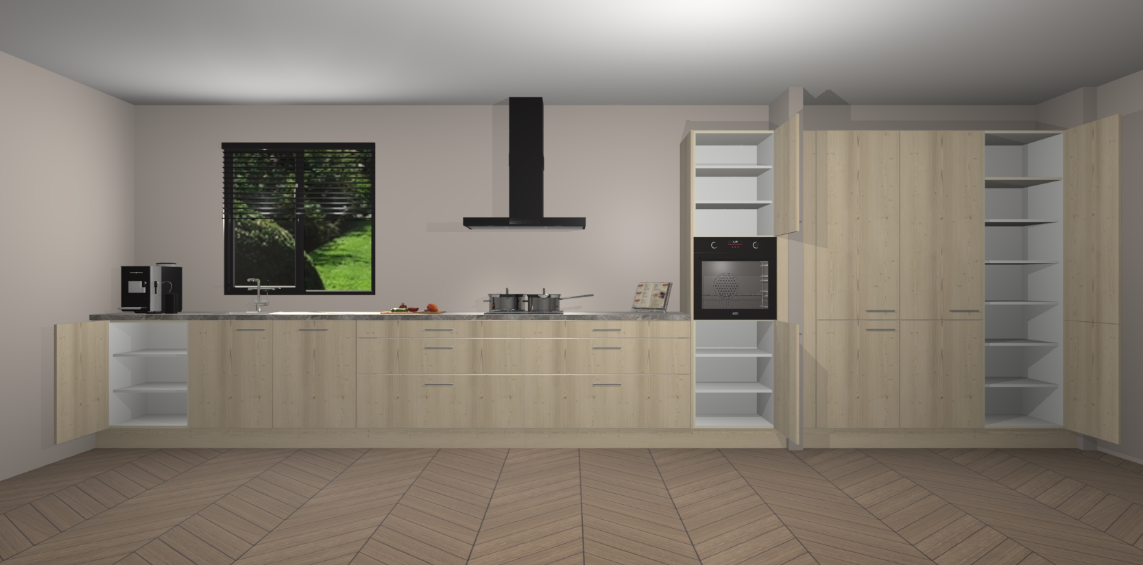Een stijlvolle en praktische keuken als deze mag gezien worden. Dankzij de prachtige matte afwerking wordt de keuken gemakkelijk het middelpunt van uw huis - hij ziet er geweldig uit onder allerlei lichtomstandigheden, van dag tot nacht!