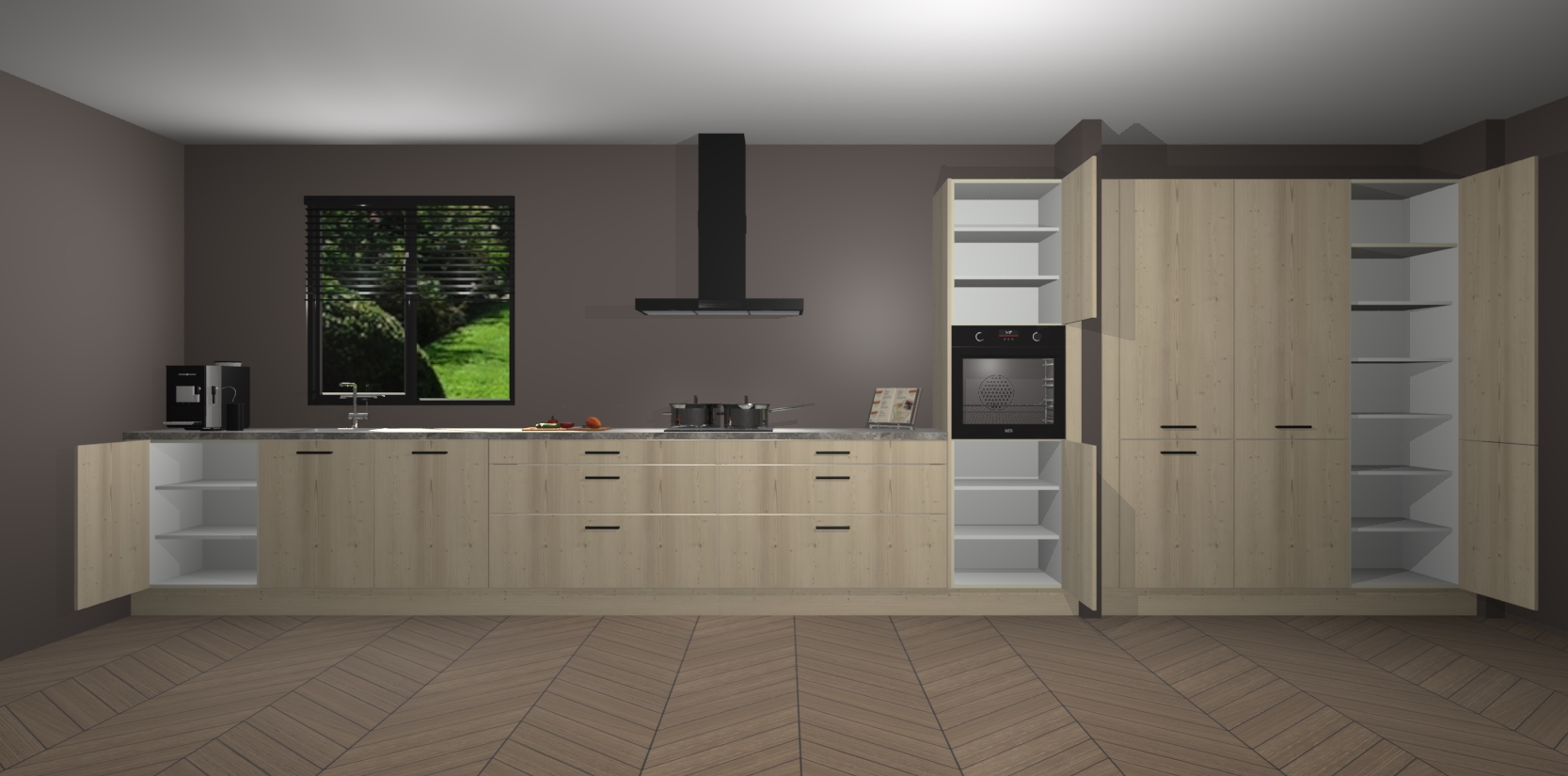 Een stijlvolle en praktische keuken als deze mag gezien worden. Dankzij de prachtige matte afwerking wordt de keuken gemakkelijk het middelpunt van uw huis - hij ziet er geweldig uit onder allerlei lichtomstandigheden, van dag tot nacht!