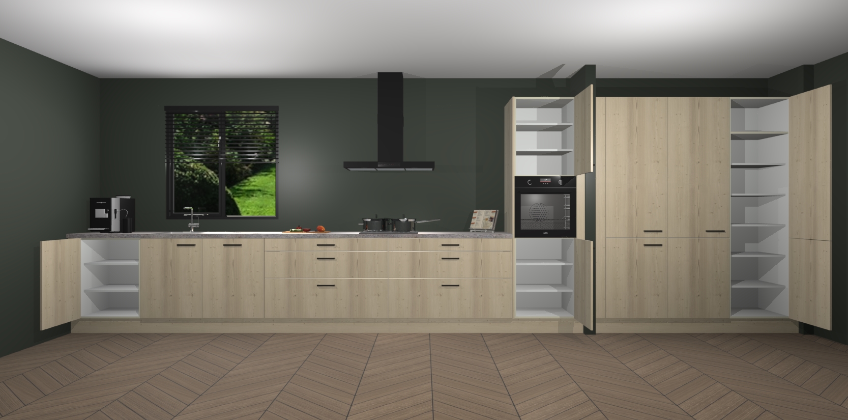 Een stijlvolle en praktische keuken als deze mag gezien worden. Dankzij de prachtige matte afwerking wordt de keuken gemakkelijk het middelpunt van uw huis - hij ziet er geweldig uit onder allerlei lichtomstandigheden, van dag tot nacht!