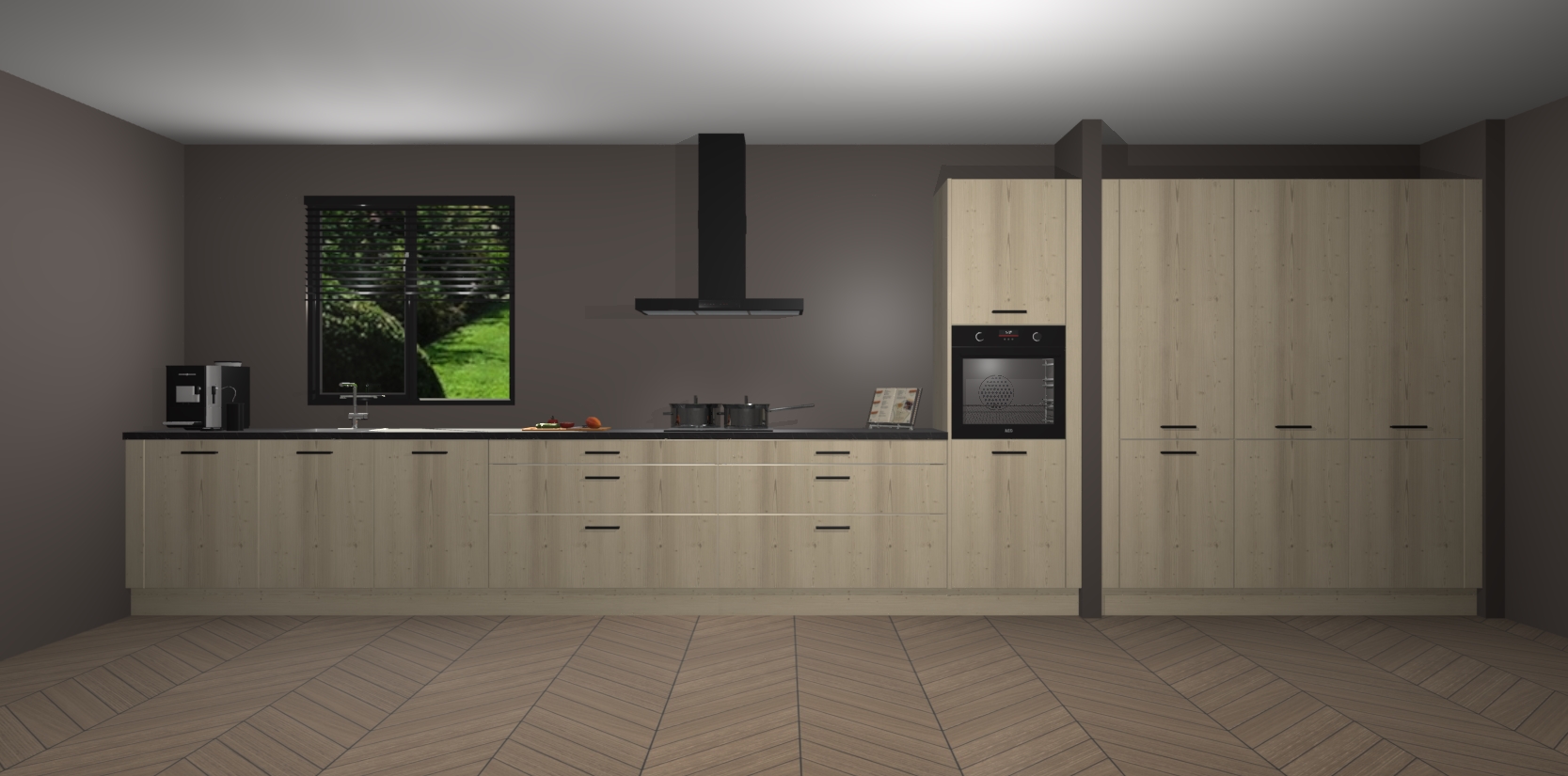 Een stijlvolle en praktische keuken als deze mag gezien worden. Dankzij de prachtige matte afwerking wordt de keuken gemakkelijk het middelpunt van uw huis - hij ziet er geweldig uit onder allerlei lichtomstandigheden, van dag tot nacht!