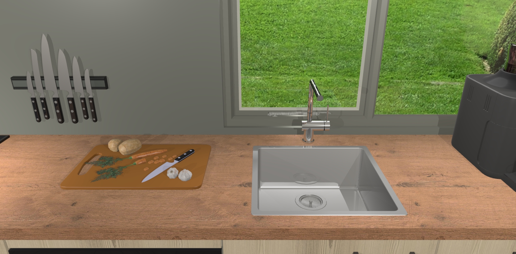 - De spoelbak is nog niet in gevreesd. Dit dient tijdens het werk gedaan te worden