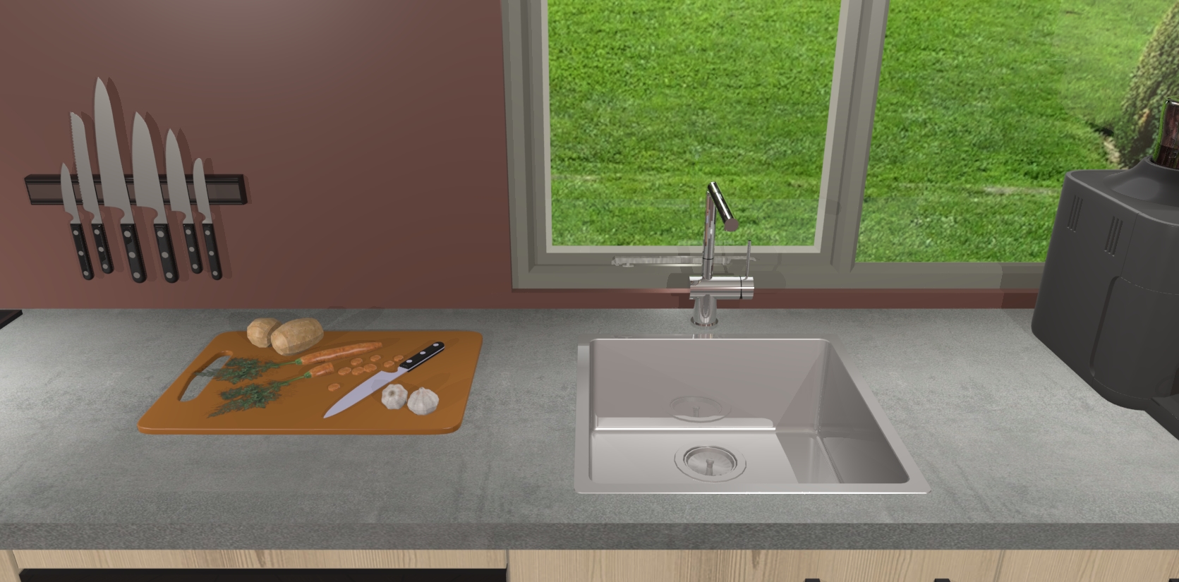 - De spoelbak is nog niet in gevreesd. Dit dient tijdens het werk gedaan te worden