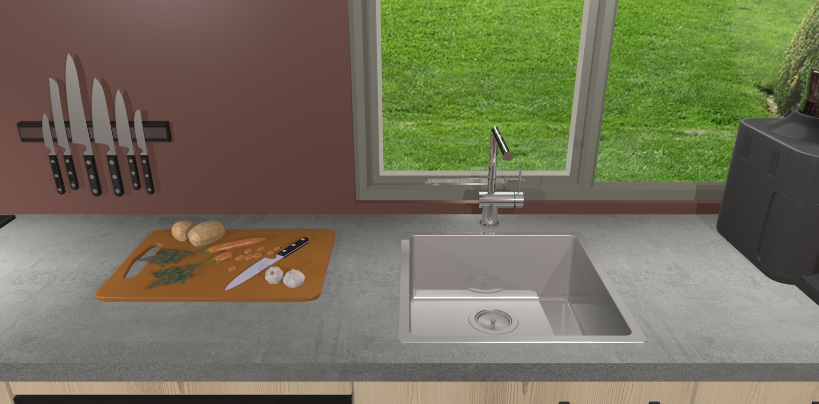 - De spoelbak is nog niet in gevreesd. Dit dient tijdens het werk gedaan te worden