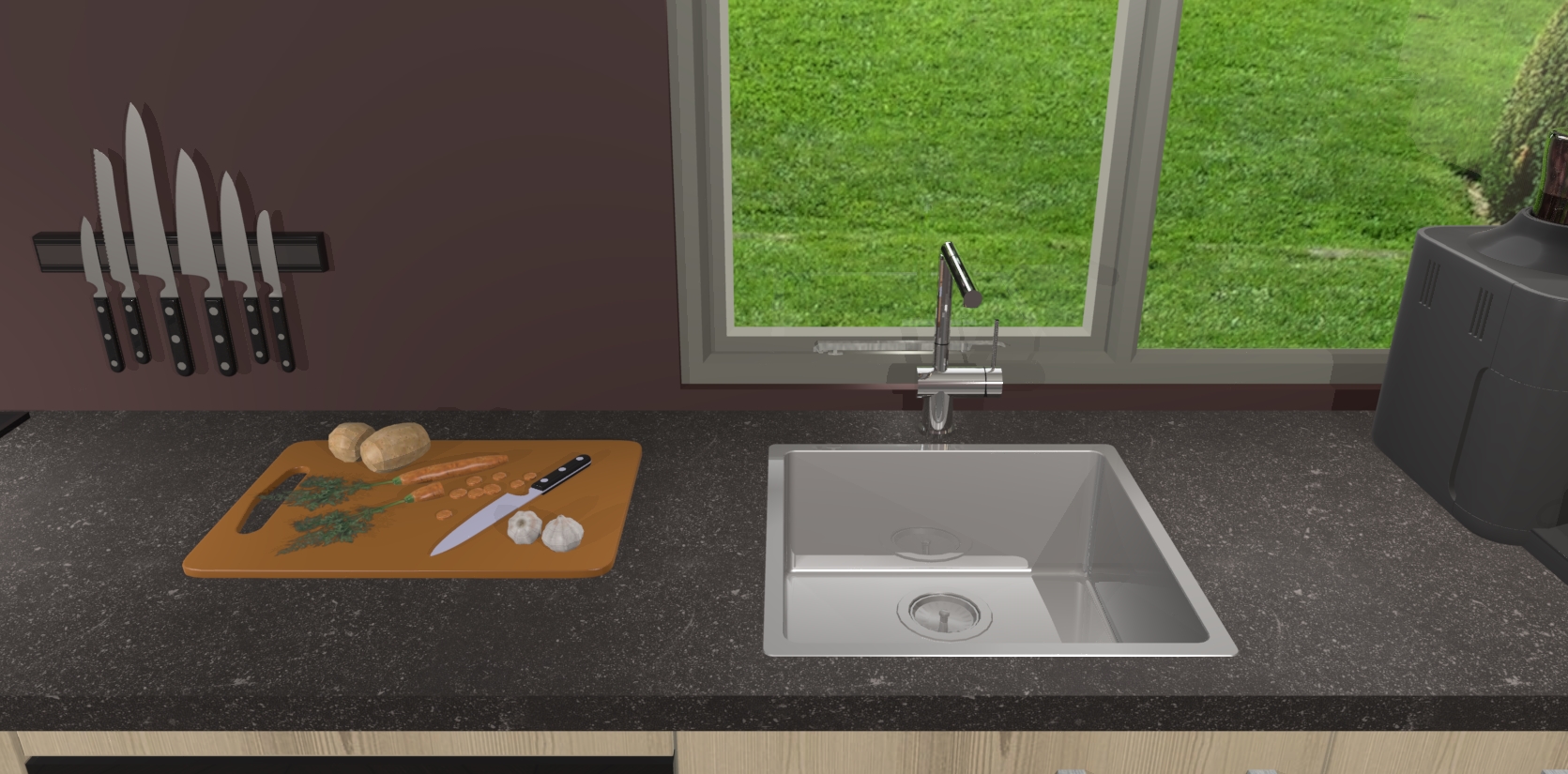 - De spoelbak is nog niet in gevreesd. Dit dient tijdens het werk gedaan te worden
