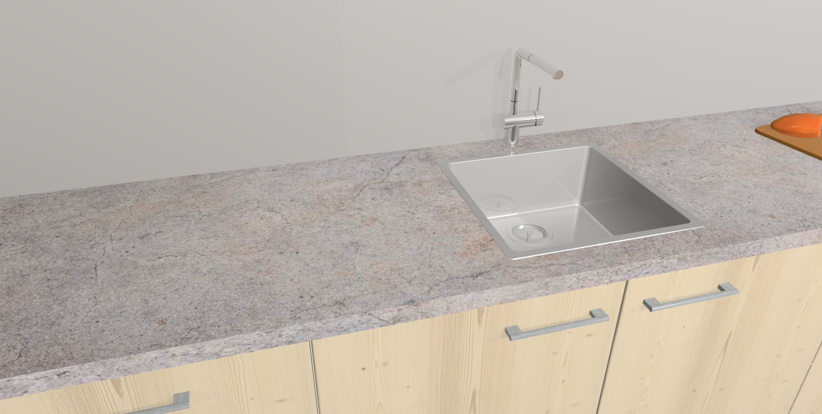 - De spoelbak is nog niet in gevreesd. Dit dient tijdens het werk gedaan te worden