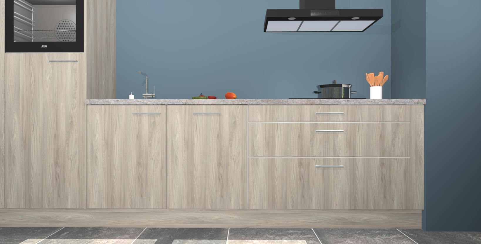 Inclusief plinten, stelpoten en werkblad