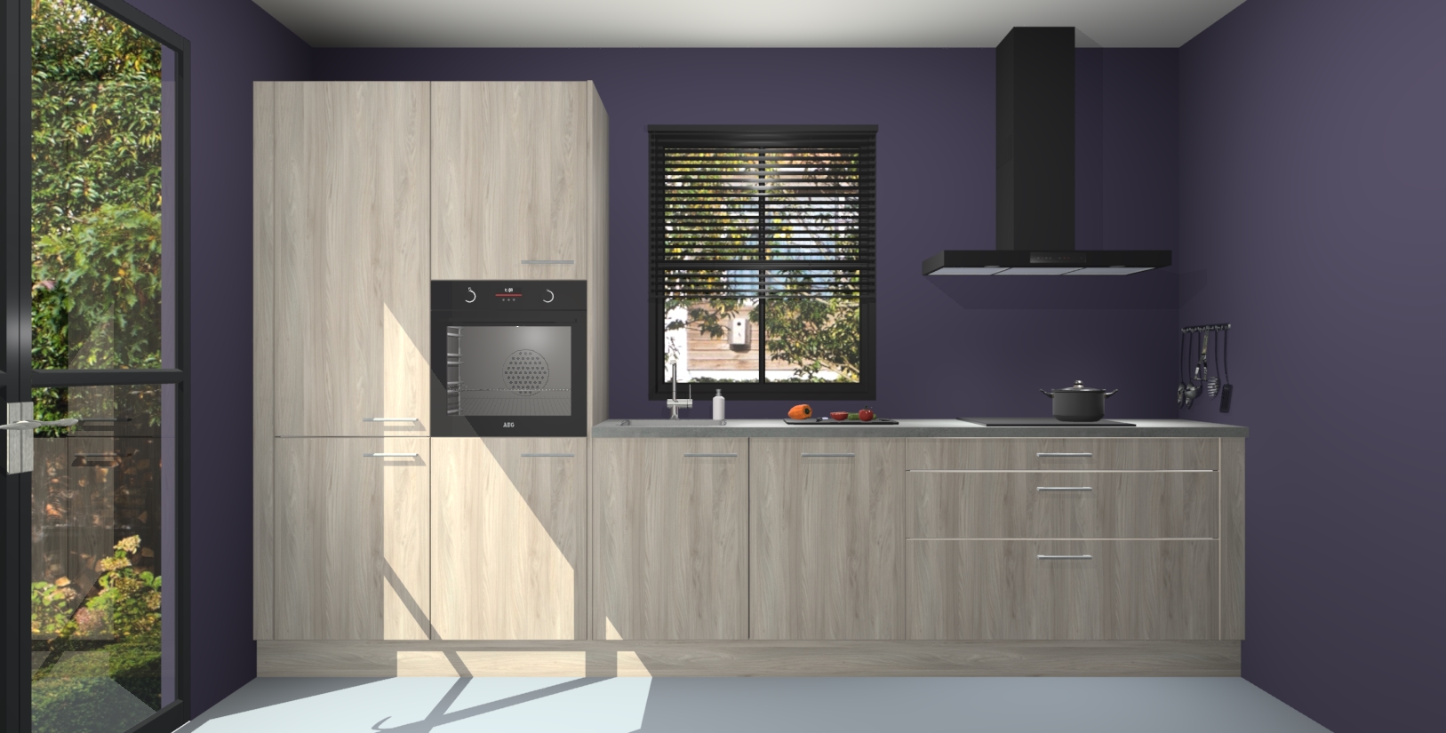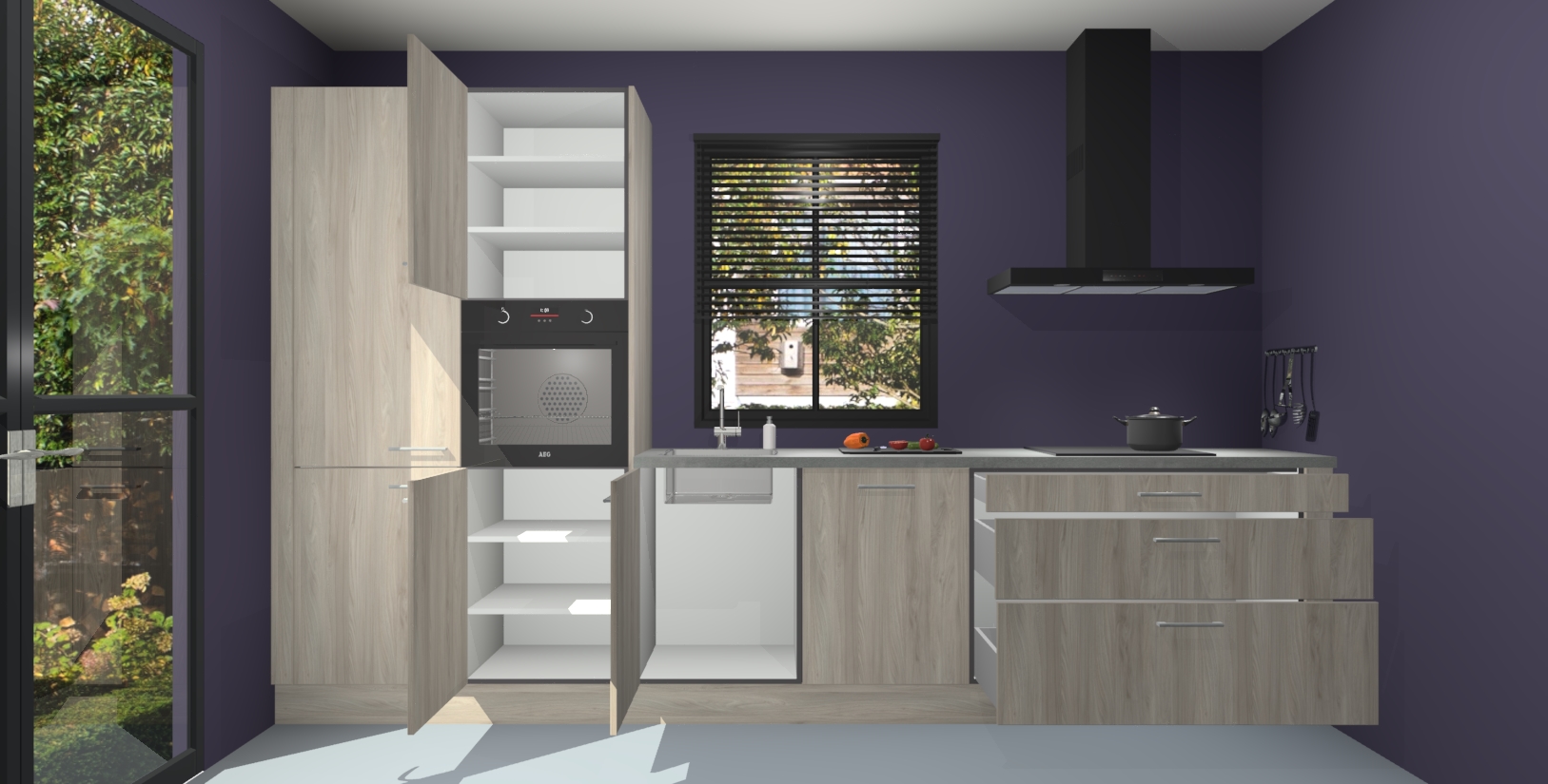 Maak kennis met de Vuren keuken Brussel: de perfecte mix van stijl en gemak. De keuken heeft vijf inbouw apparaten, plus een de frontjes in houtlook dat meteen warmte en verfijning toevoegt.