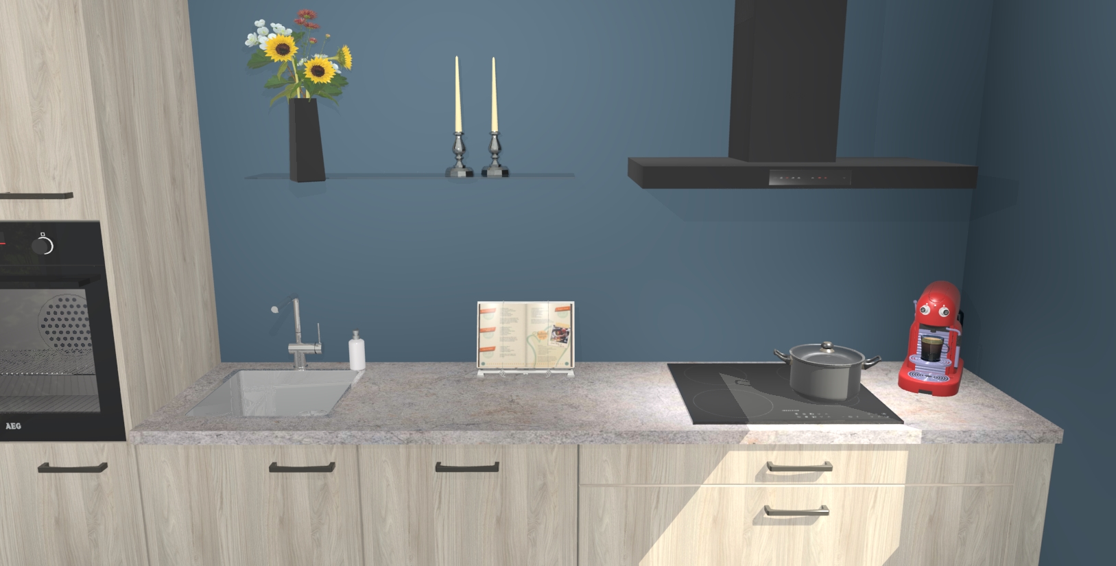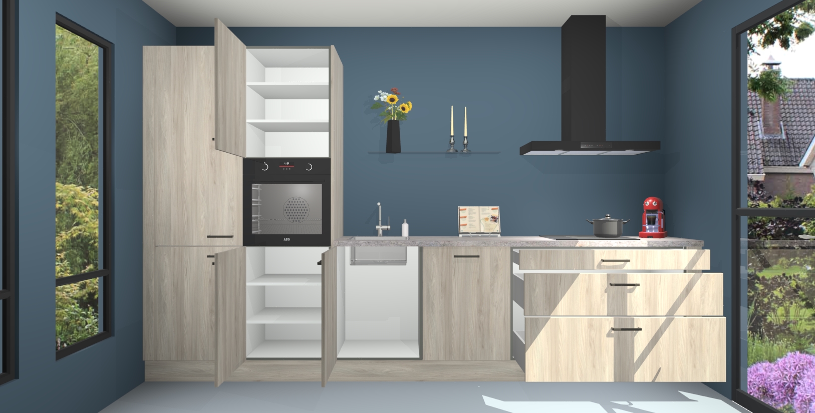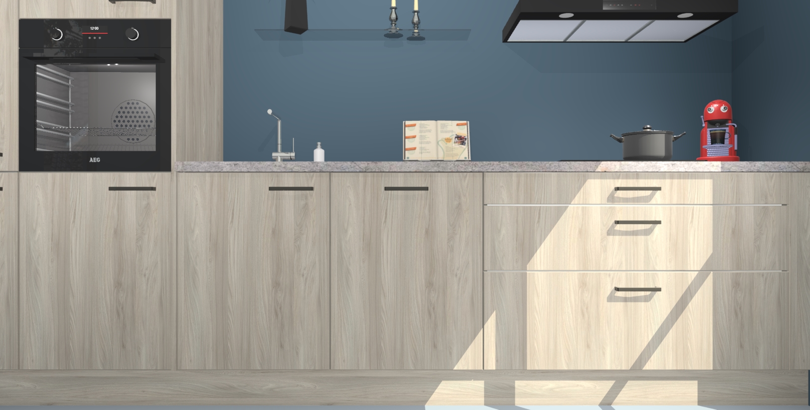 Inclusief plinten, stelpoten en werkblad