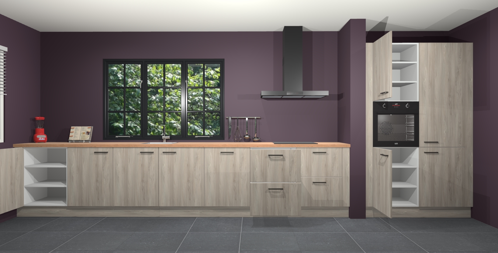 Met de Vuren keuken Elzas Maakt u van uw keuken het pronkstuk van uw huis. Stijlvol en toch praktisch, de nieuwste look voor wie meer waarde en charme aan zijn huis wil toevoegen. Met prachtige handgrepen die zich lenen voor een klassieke stijlbron, zal u niet teleurgesteld zijn in het resultaat. De soft-close deurscharnieren geven een gevoel van luxe omdat ze zachtjes bewegen zonder storende of krakende geluiden te veroorzaken.