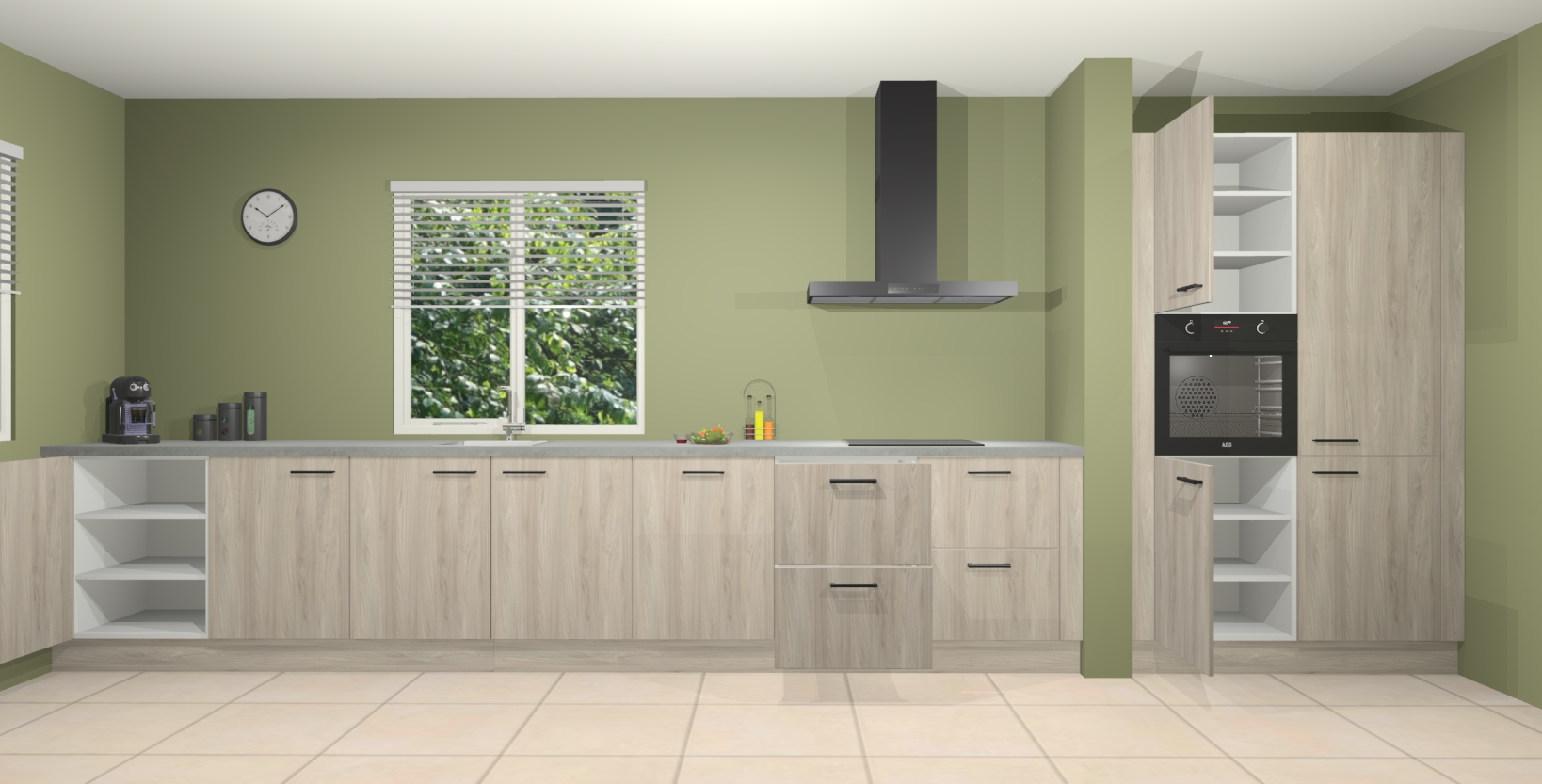 Met de Vuren keuken Elzas Maakt u van uw keuken het pronkstuk van uw huis. Stijlvol en toch praktisch, de nieuwste look voor wie meer waarde en charme aan zijn huis wil toevoegen. Met prachtige handgrepen die zich lenen voor een klassieke stijlbron, zal u niet teleurgesteld zijn in het resultaat. De soft-close deurscharnieren geven een gevoel van luxe omdat ze zachtjes bewegen zonder storende of krakende geluiden te veroorzaken.