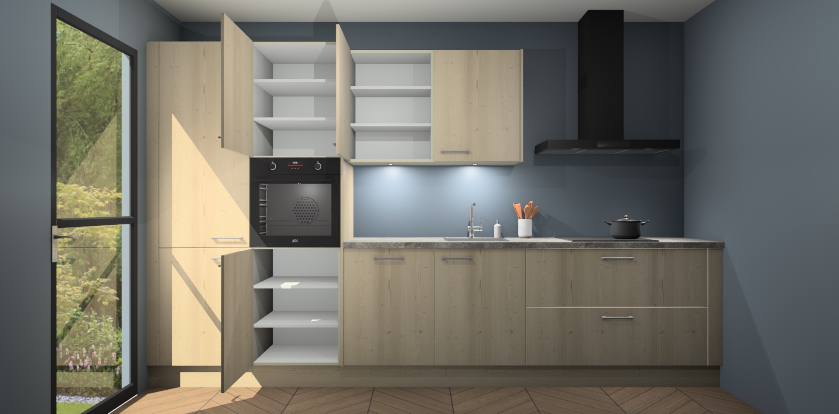 De Vuren keuken Groenland: waar tijdloze elegantie en robuuste constructie elkaar ontmoeten. Door de combinatie van luxe en veerkracht zal deze keuken u de komende jaren goed van dienst zijn. De prachtige zachte look zorgt voor een tijdloze esthetiek die niet zal slijten met de tijd, waardoor u een decoratieve toevoeging aan uw huis creëert. Onze hoogwaardige kasten zijn gebouwd om lang mee te gaan en is zeer duurzaam en bestand tegen krassen, waardoor het ideaal is voor drukke gezinnen.