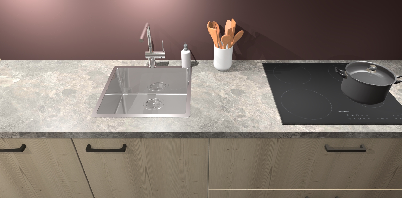 - Uitsparing van kookplaat, spoelbak en kraan dient u zelf te verzorgen.