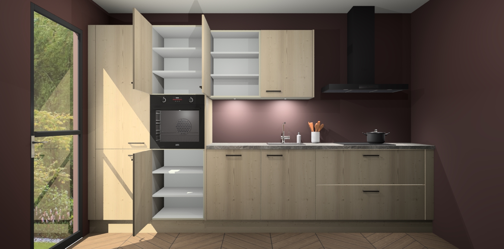De Vuren keuken Groenland: waar tijdloze elegantie en robuuste constructie elkaar ontmoeten. Door de combinatie van luxe en veerkracht zal deze keuken u de komende jaren goed van dienst zijn. De prachtige zachte look zorgt voor een tijdloze esthetiek die niet zal slijten met de tijd, waardoor u een decoratieve toevoeging aan uw huis creëert. Onze hoogwaardige kasten zijn gebouwd om lang mee te gaan en is zeer duurzaam en bestand tegen krassen, waardoor het ideaal is voor drukke gezinnen.