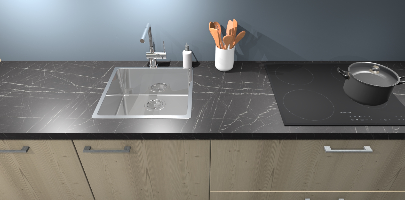 • Bij een hoekwerkblad zijn de hoeken in gevreesd en op maat gemaakt