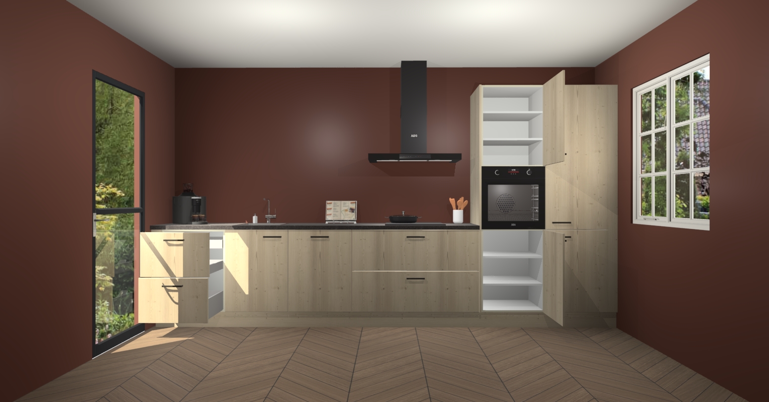 De Vuren keuken Leuven is de perfecte mix van modern en tijdloos design. Met zijn prachtige glazen deuren op de bovenkastjes voegt hij echt iets speciaals en unieks toe aan elke keuken. En met vijf ingebouwde apparaten inbegrepen - een oven, inductiekookplaat, afzuigkap, vaatwasser en koelkast - kunt u deze keuken echt helemaal van uzelf maken! U kunt na bestelling ook upgraden naar AEG voor een nog hogere kwaliteitservaring.