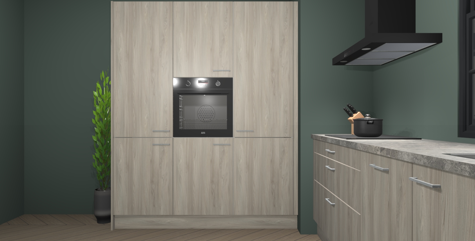 De softclose deuren openen en sluiten is ook heel eenvoudig - geniet van een moeiteloze keukenervaring, zelfs als er kinderen rondlopen. Voor extra gemak bij het plaatsen van uw bestelling bieden we ook een upgrade naar een kookplaat met geïntegreerde afzuiging.