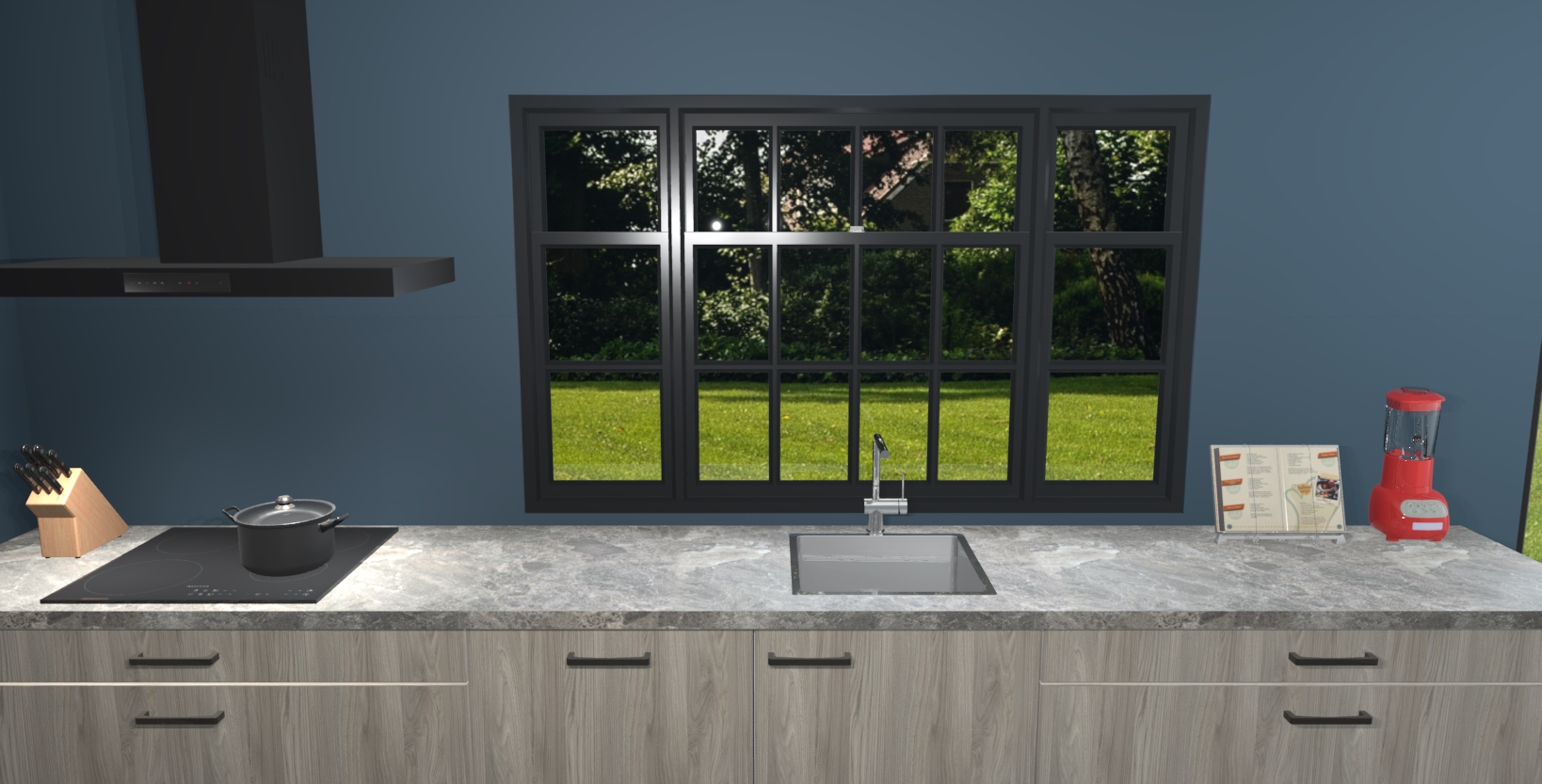 De softclose deuren openen en sluiten is ook heel eenvoudig - geniet van een moeiteloze keukenervaring, zelfs als er kinderen rondlopen. Voor extra gemak bij het plaatsen van uw bestelling bieden we ook een upgrade naar een kookplaat met geïntegreerde afzuiging.