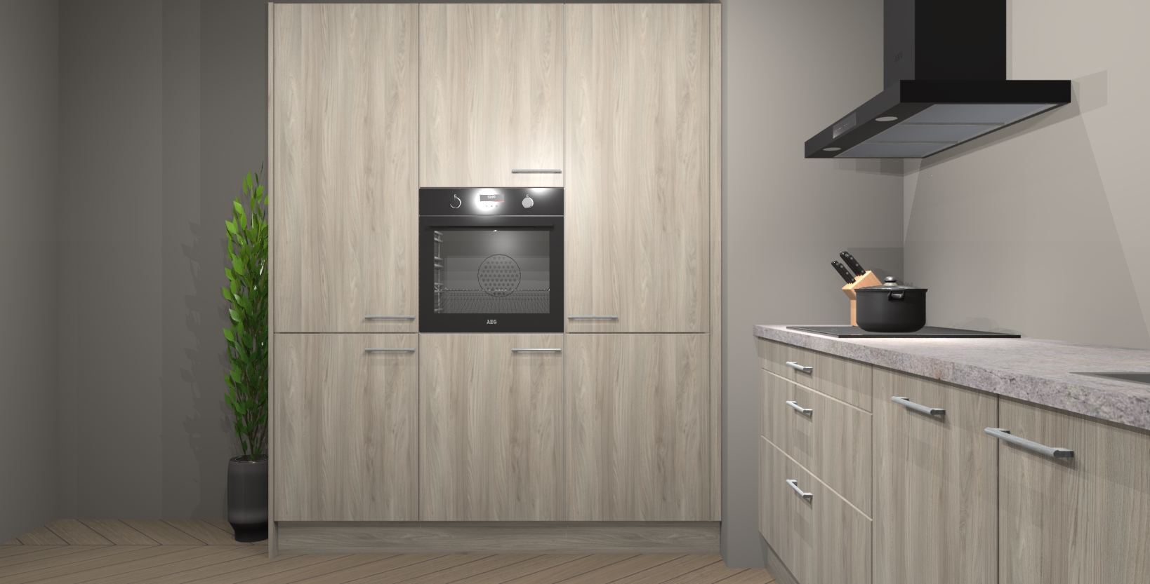 De softclose deuren openen en sluiten is ook heel eenvoudig - geniet van een moeiteloze keukenervaring, zelfs als er kinderen rondlopen. Voor extra gemak bij het plaatsen van uw bestelling bieden we ook een upgrade naar een kookplaat met geïntegreerde afzuiging.