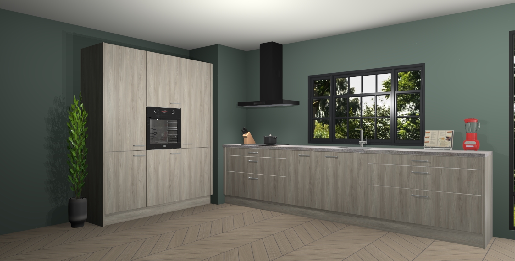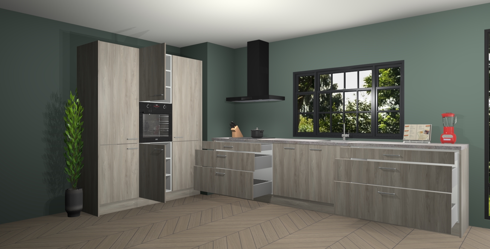 De softclose deuren openen en sluiten is ook heel eenvoudig - geniet van een moeiteloze keukenervaring, zelfs als er kinderen rondlopen. Voor extra gemak bij het plaatsen van uw bestelling bieden we ook een upgrade naar een kookplaat met geïntegreerde afzuiging.