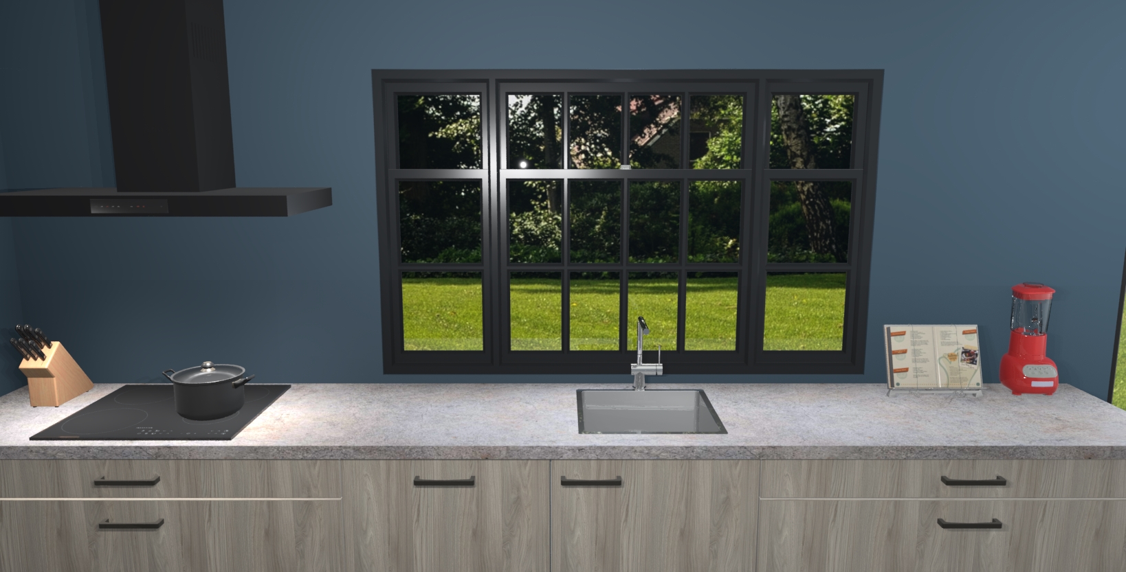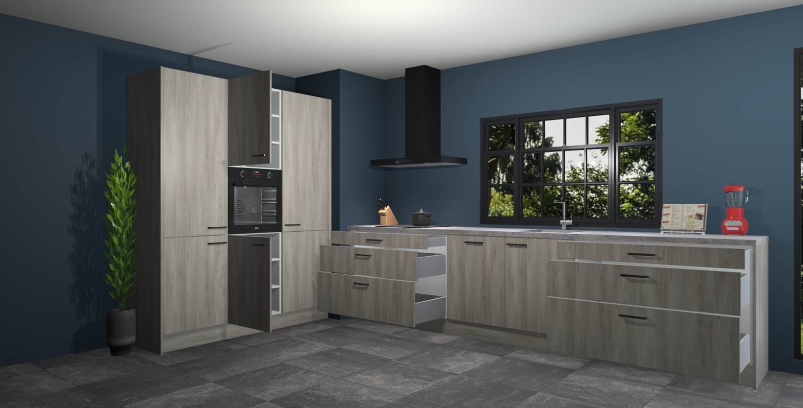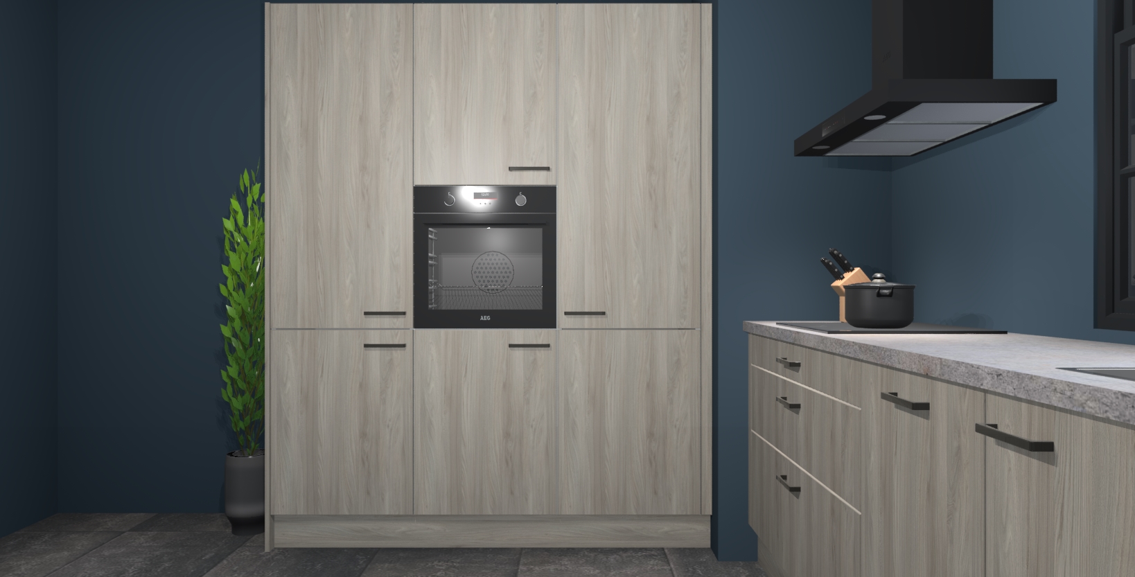 De softclose deuren openen en sluiten is ook heel eenvoudig - geniet van een moeiteloze keukenervaring, zelfs als er kinderen rondlopen. Voor extra gemak bij het plaatsen van uw bestelling bieden we ook een upgrade naar een kookplaat met geïntegreerde afzuiging.