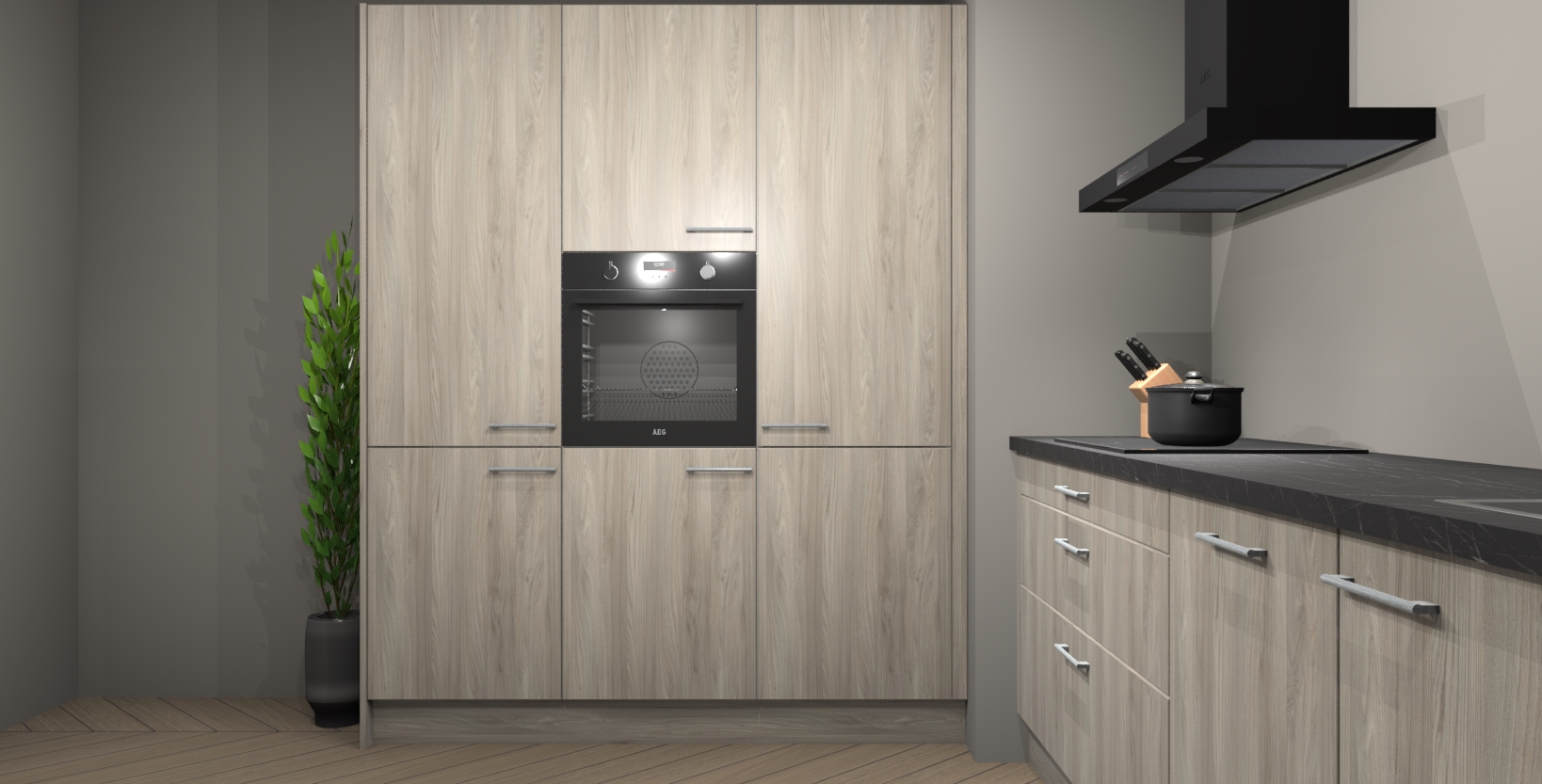 De softclose deuren openen en sluiten is ook heel eenvoudig - geniet van een moeiteloze keukenervaring, zelfs als er kinderen rondlopen. Voor extra gemak bij het plaatsen van uw bestelling bieden we ook een upgrade naar een kookplaat met geïntegreerde afzuiging.