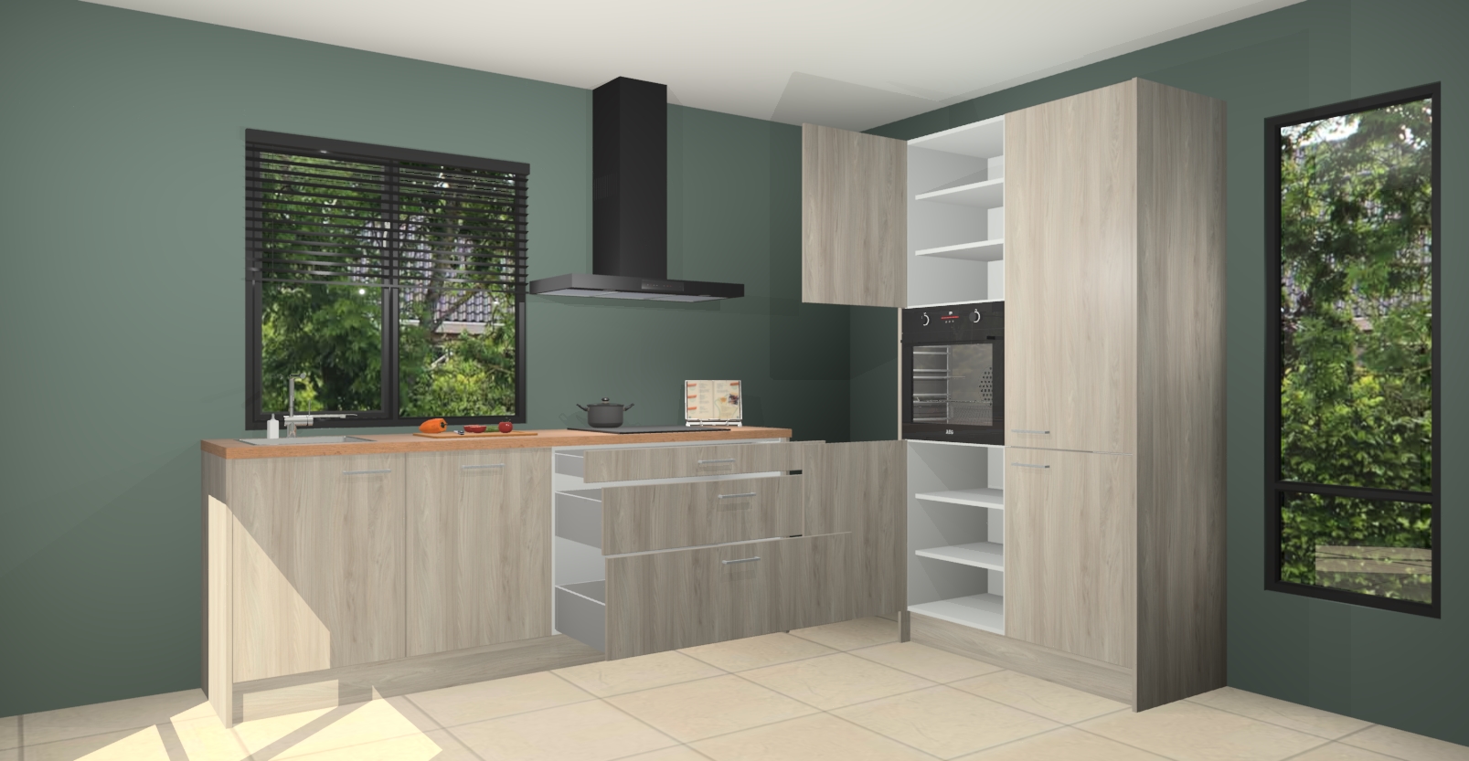 De setting is compleet gemaakt door de vijf inbouwapparaten: wanneer u gaat bestellen kunt u upgraden naar AEG-apparaten als oven, inductieplaat, afzuigkap, vaatwasser en koelkast. Kiest u voor onze Vuren keuken Monaco, dan weet u zeker dat u te maken heeft met Duitse kwaliteit. Bovendien is er altijd sprake van een lage prijs en profiteren we aantrekkelijk leveringstermijn: die bedraagt slechts 7 weken ! Om het extra makkelijk te maken worden de keukenkasten reeds voorgemonteerd geleverd.