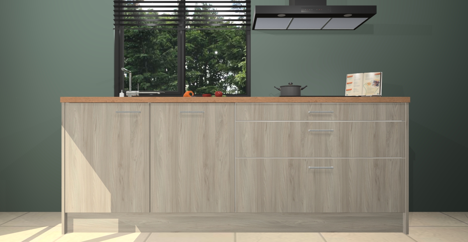 Inclusief plinten, stelpoten en werkblad