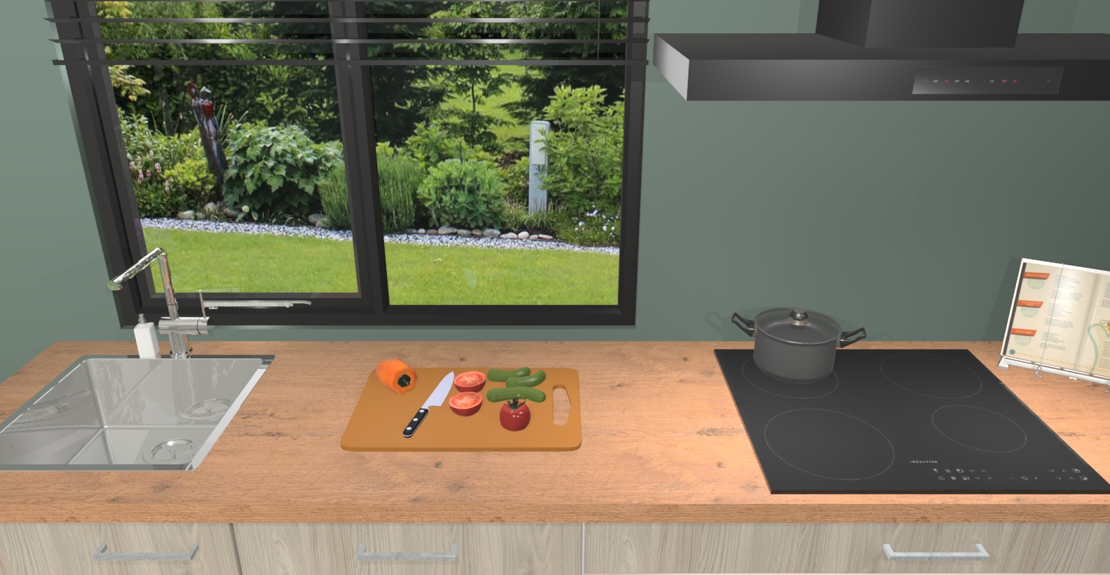 - Uitsparing van kookplaat, spoelbak en kraan dient u zelf te verzorgen.