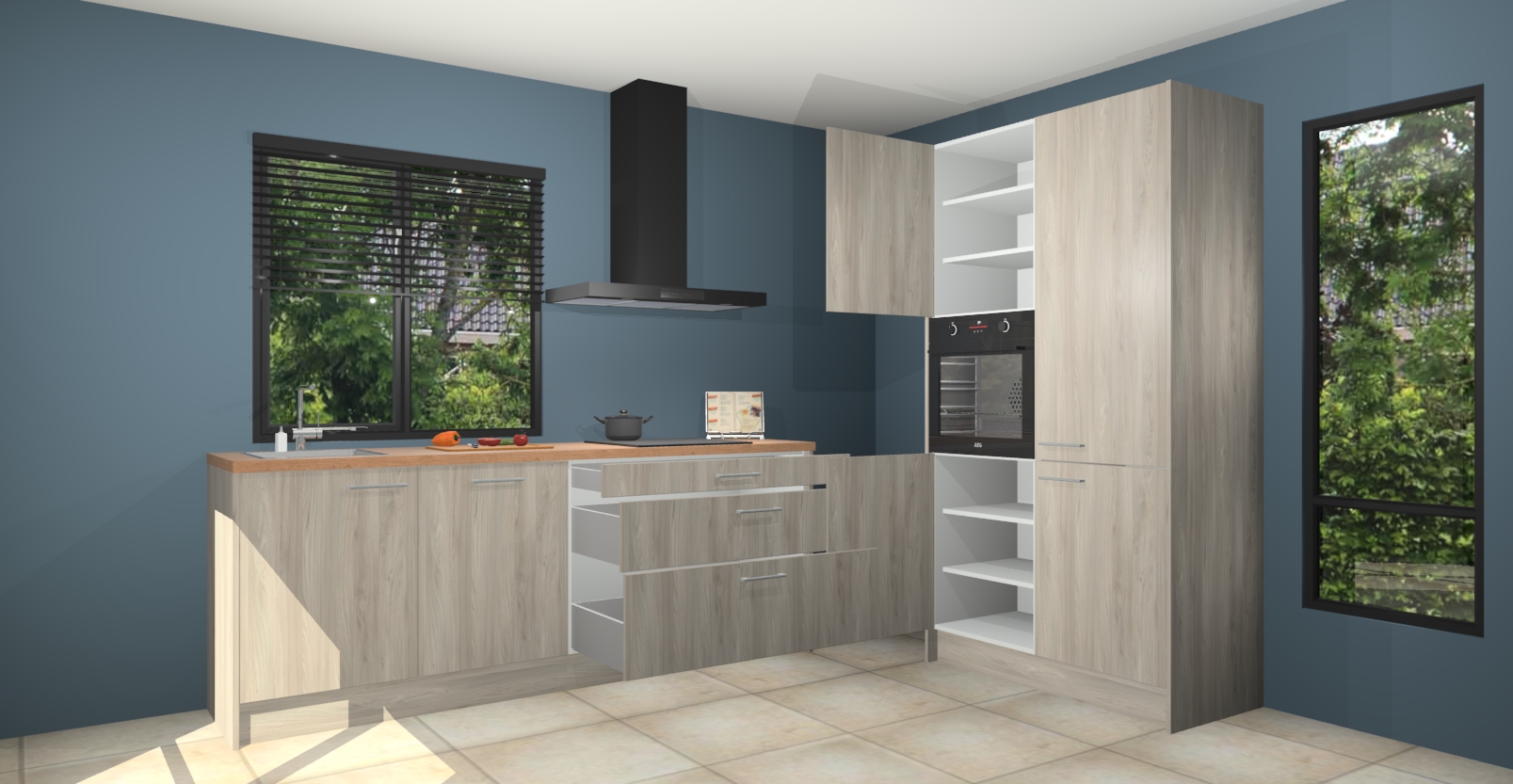 De setting is compleet gemaakt door de vijf inbouwapparaten: wanneer u gaat bestellen kunt u upgraden naar AEG-apparaten als oven, inductieplaat, afzuigkap, vaatwasser en koelkast. Kiest u voor onze Vuren keuken Monaco, dan weet u zeker dat u te maken heeft met Duitse kwaliteit. Bovendien is er altijd sprake van een lage prijs en profiteren we aantrekkelijk leveringstermijn: die bedraagt slechts 7 weken ! Om het extra makkelijk te maken worden de keukenkasten reeds voorgemonteerd geleverd.