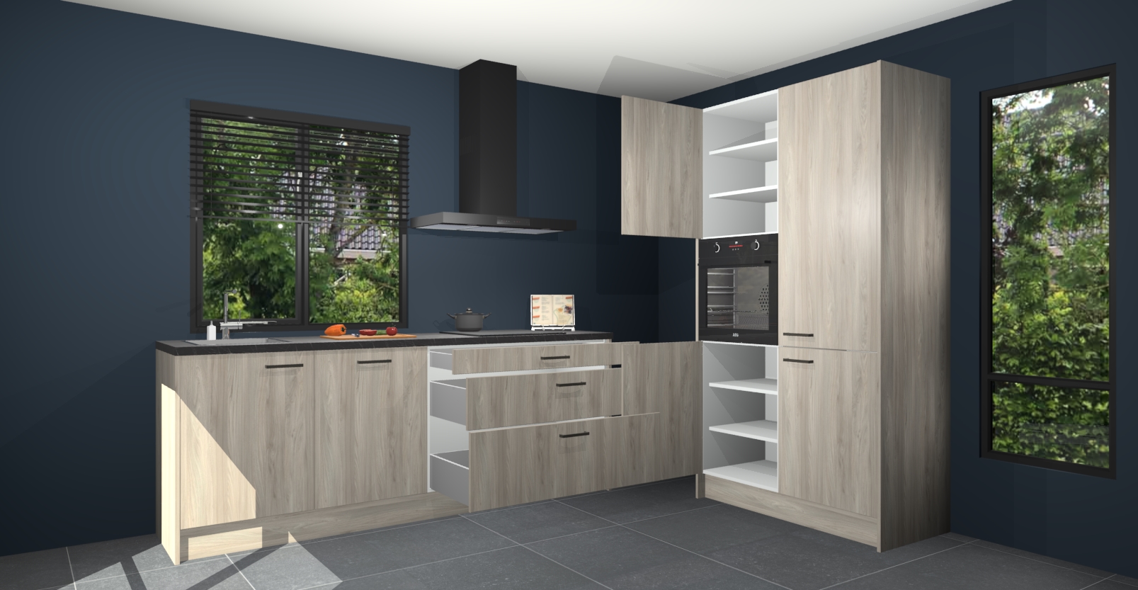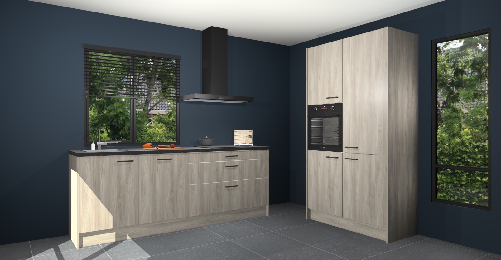 De setting is compleet gemaakt door de vijf inbouwapparaten: wanneer u gaat bestellen kunt u upgraden naar AEG-apparaten als oven, inductieplaat, afzuigkap, vaatwasser en koelkast. Kiest u voor onze Vuren keuken Monaco, dan weet u zeker dat u te maken heeft met Duitse kwaliteit. Bovendien is er altijd sprake van een lage prijs en profiteren we aantrekkelijk leveringstermijn: die bedraagt slechts 7 weken ! Om het extra makkelijk te maken worden de keukenkasten reeds voorgemonteerd geleverd.