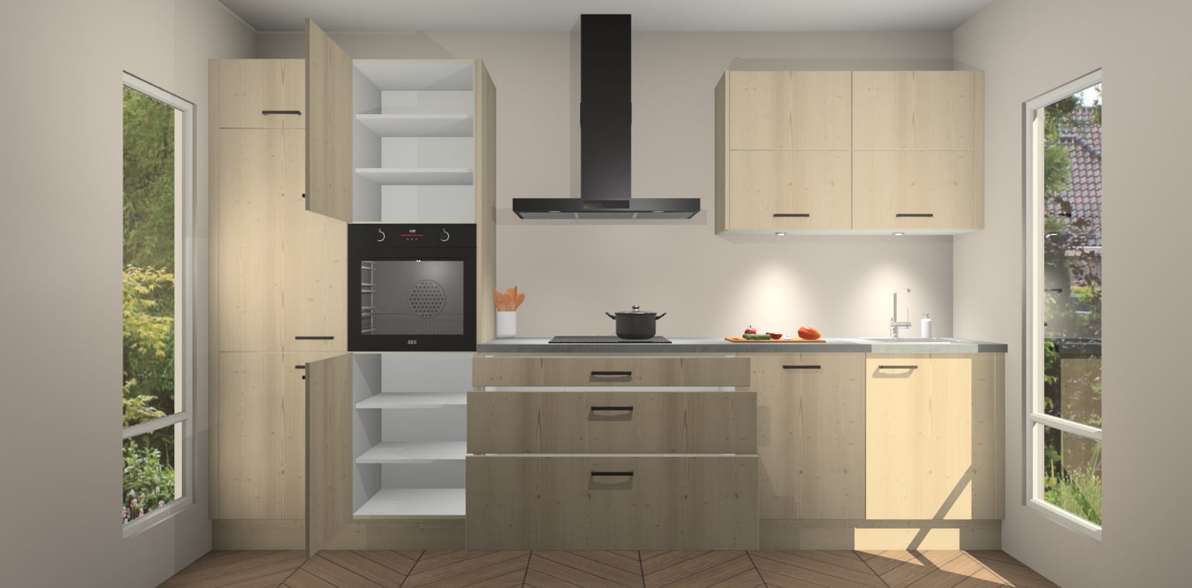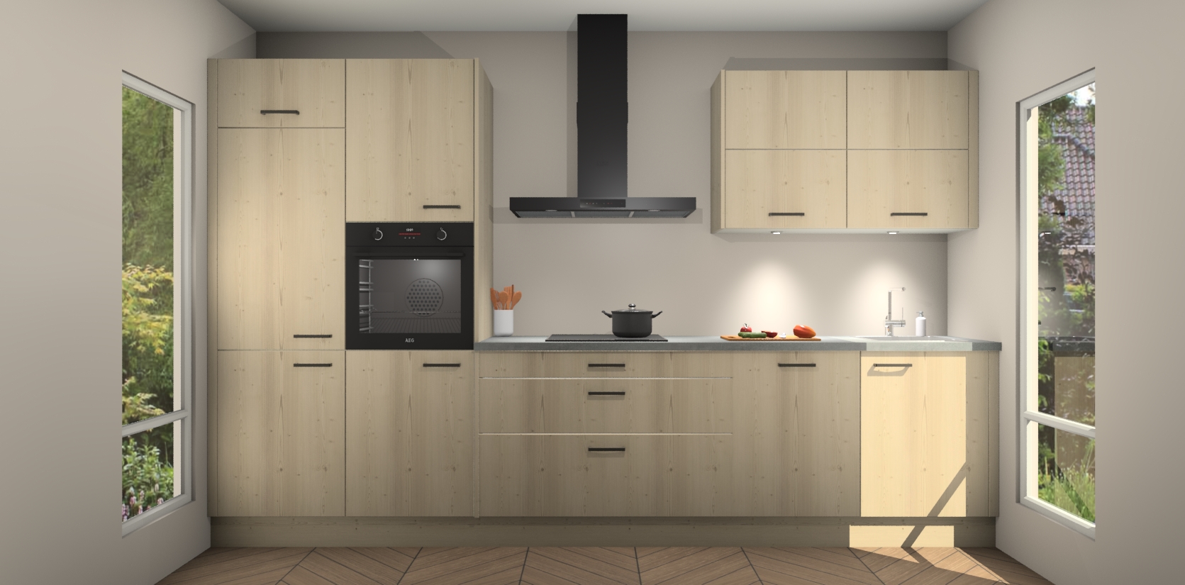 Maak kennis met de nieuwe Vuren Keuken Parijs - de perfecte designcombinatie van gemak, moderne elegantie en ultramodern design. Met een gemakkelijk te reinigen Vuren afwerking, zal de slankheid van deze keuken zeker een vleugje luxe toevoegen aan elke ruimte die hij inneemt.