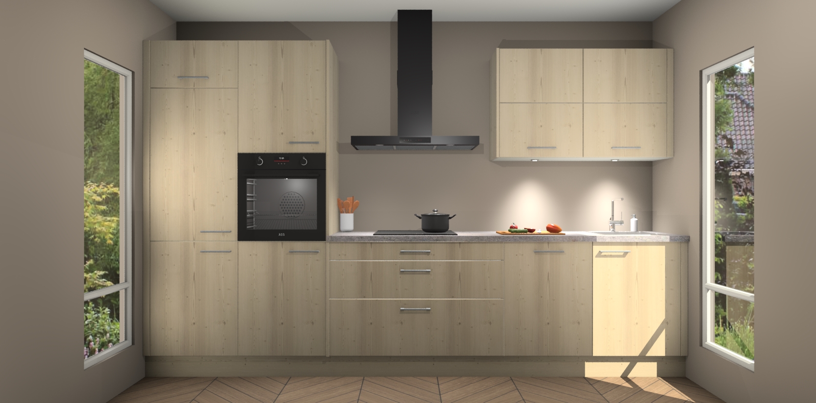 Maak kennis met de nieuwe Vuren Keuken Parijs - de perfecte designcombinatie van gemak, moderne elegantie en ultramodern design. Met een gemakkelijk te reinigen Vuren afwerking, zal de slankheid van deze keuken zeker een vleugje luxe toevoegen aan elke ruimte die hij inneemt.