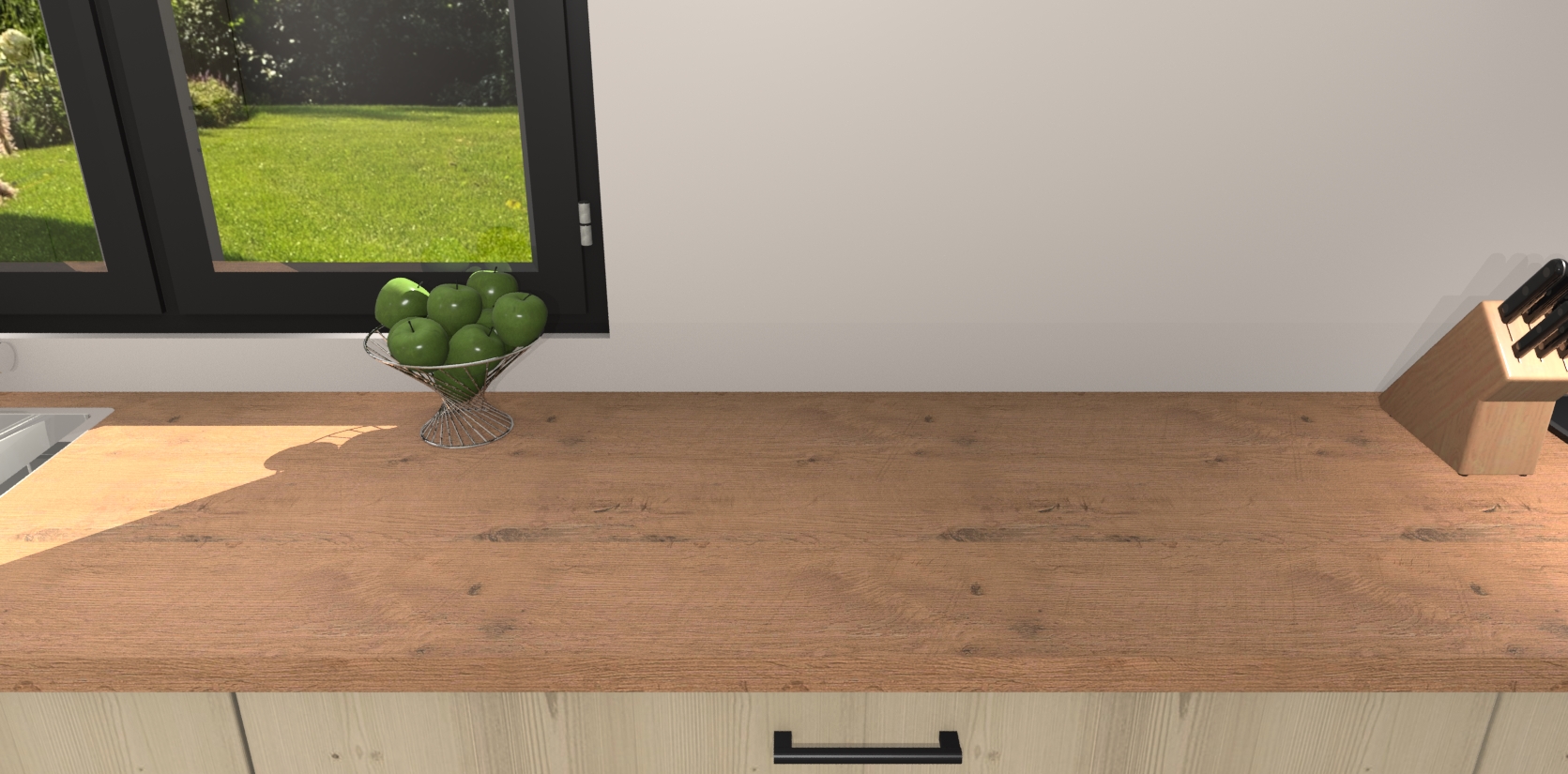 - Bij een hoekwerkblad zijn de hoeken in gevreesd en op maat gemaakt