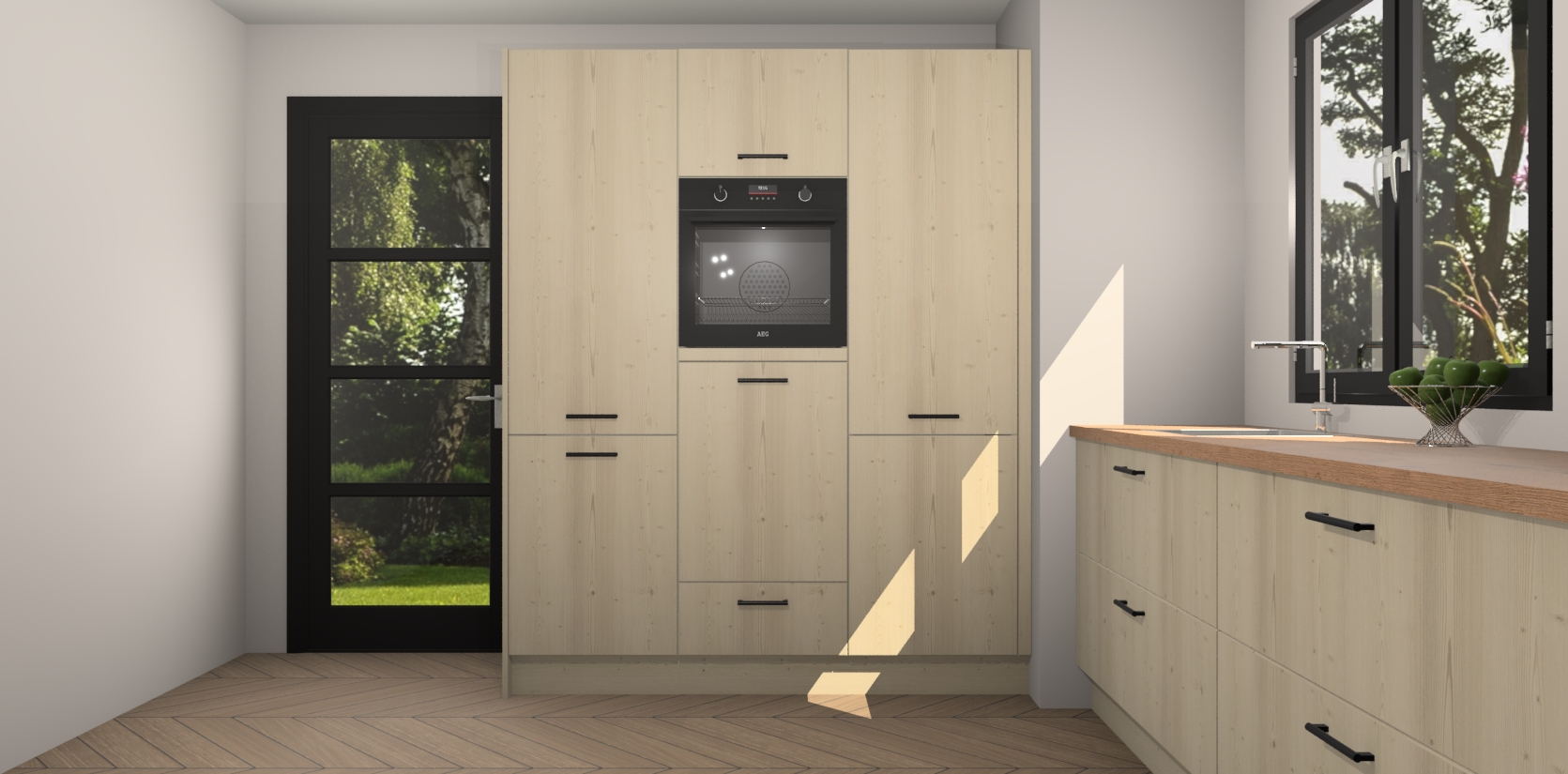 De softclose deuren openen en sluiten is ook heel eenvoudig - geniet van een moeiteloze keukenervaring, zelfs als er kinderen rondlopen. Voor extra gemak bij het plaatsen van uw bestelling bieden we ook een upgrade naar een kookplaat met geïntegreerde afzuiging.