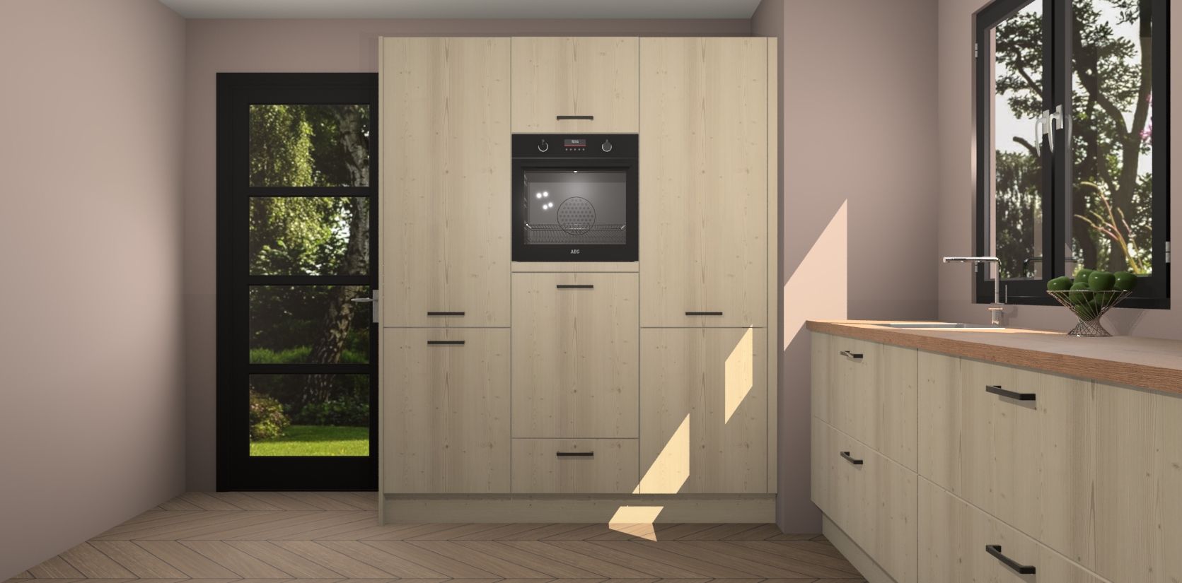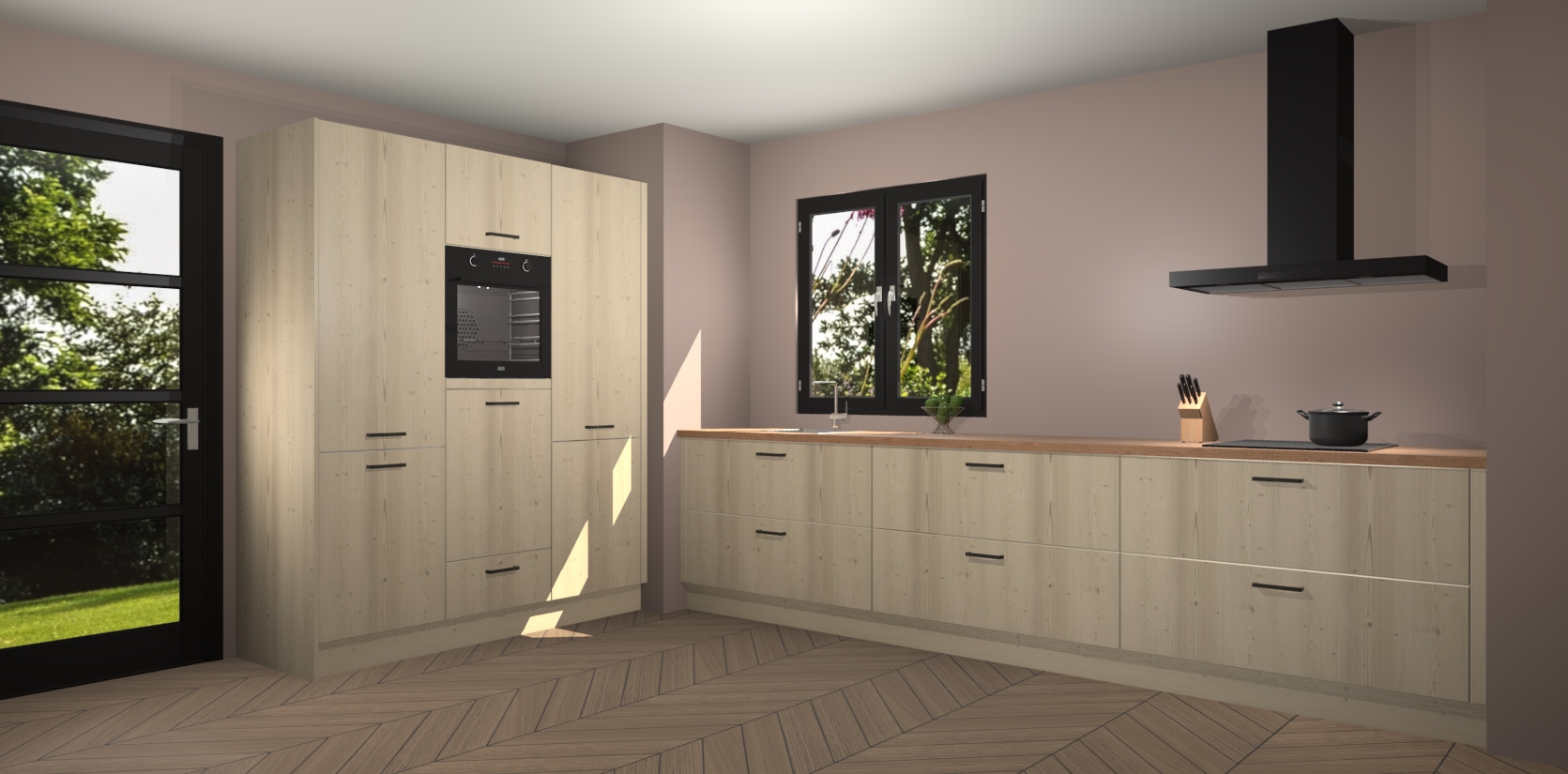 De softclose deuren openen en sluiten is ook heel eenvoudig - geniet van een moeiteloze keukenervaring, zelfs als er kinderen rondlopen. Voor extra gemak bij het plaatsen van uw bestelling bieden we ook een upgrade naar een kookplaat met geïntegreerde afzuiging.