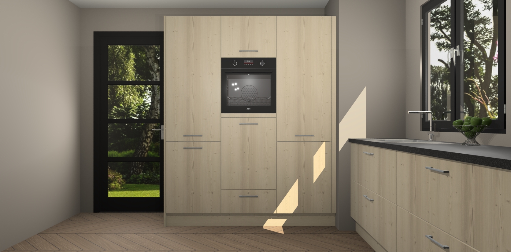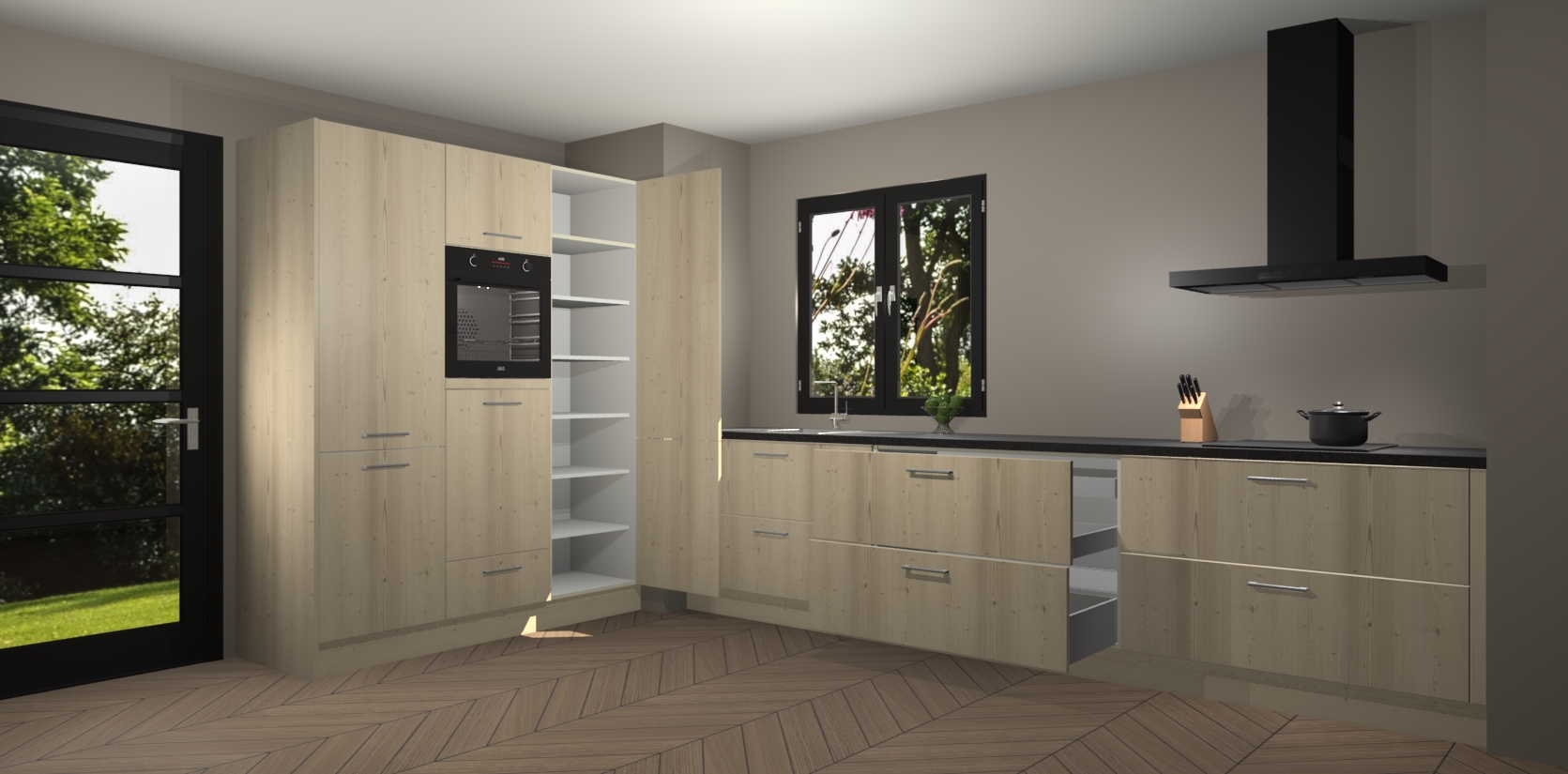 De softclose deuren openen en sluiten is ook heel eenvoudig - geniet van een moeiteloze keukenervaring, zelfs als er kinderen rondlopen. Voor extra gemak bij het plaatsen van uw bestelling bieden we ook een upgrade naar een kookplaat met geïntegreerde afzuiging.