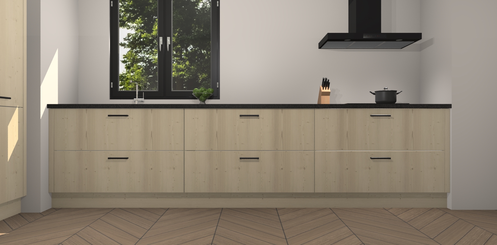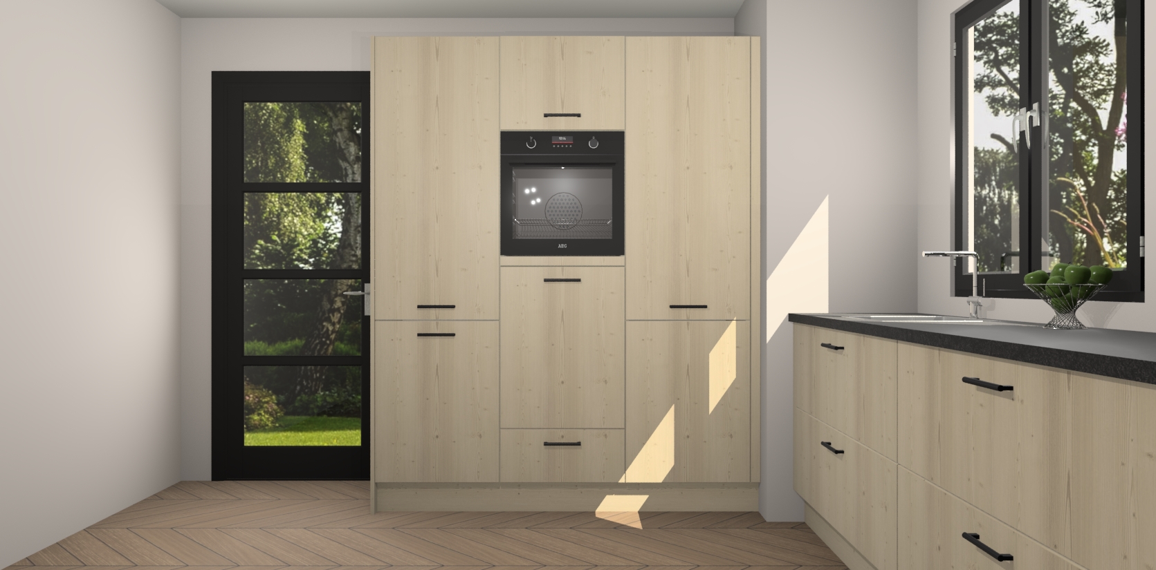 De softclose deuren openen en sluiten is ook heel eenvoudig - geniet van een moeiteloze keukenervaring, zelfs als er kinderen rondlopen. Voor extra gemak bij het plaatsen van uw bestelling bieden we ook een upgrade naar een kookplaat met geïntegreerde afzuiging.