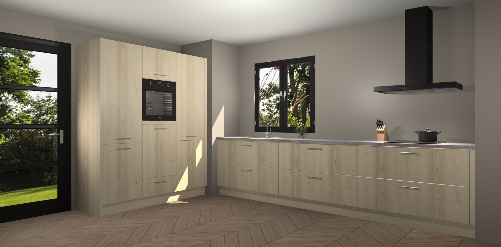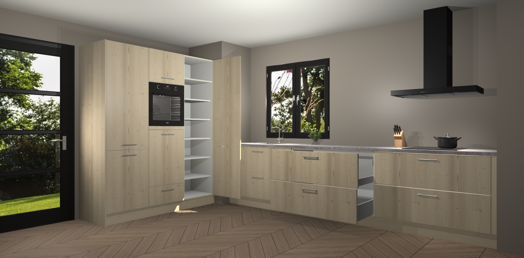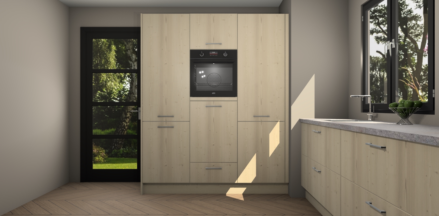 De softclose deuren openen en sluiten is ook heel eenvoudig - geniet van een moeiteloze keukenervaring, zelfs als er kinderen rondlopen. Voor extra gemak bij het plaatsen van uw bestelling bieden we ook een upgrade naar een kookplaat met geïntegreerde afzuiging.